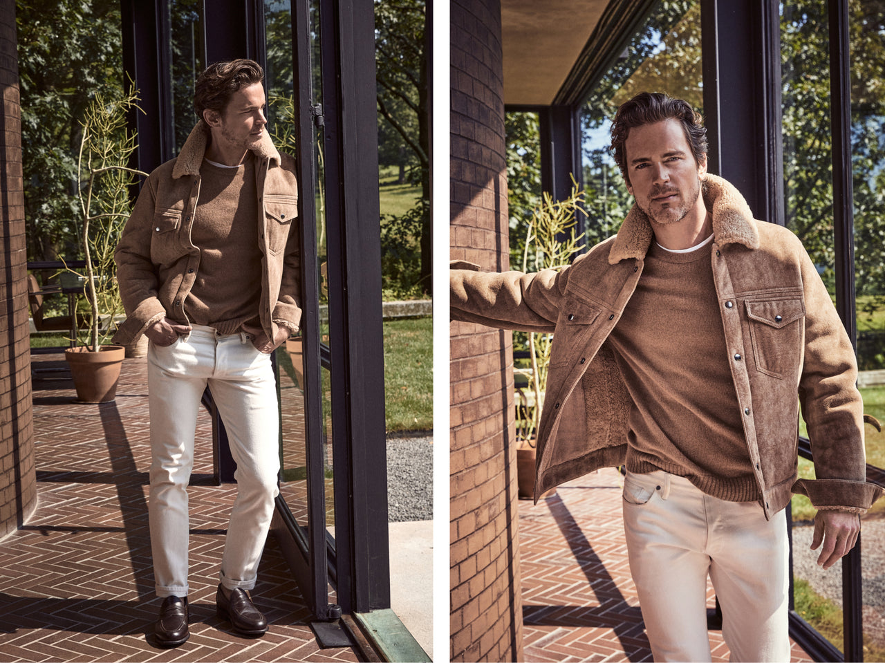 Despite these steamy on-screen moments, off-screen, he’s a low-key family man; he’s been married to power publicist Simon Halls since 2011, and they’re raising three boys in Los Angeles. While the SAG/AFTRA strike prevented him from kissing and telling about his scenes with Messrs. Bailey and Cooper, it seemed a good time to check in with an old friend of the brand.