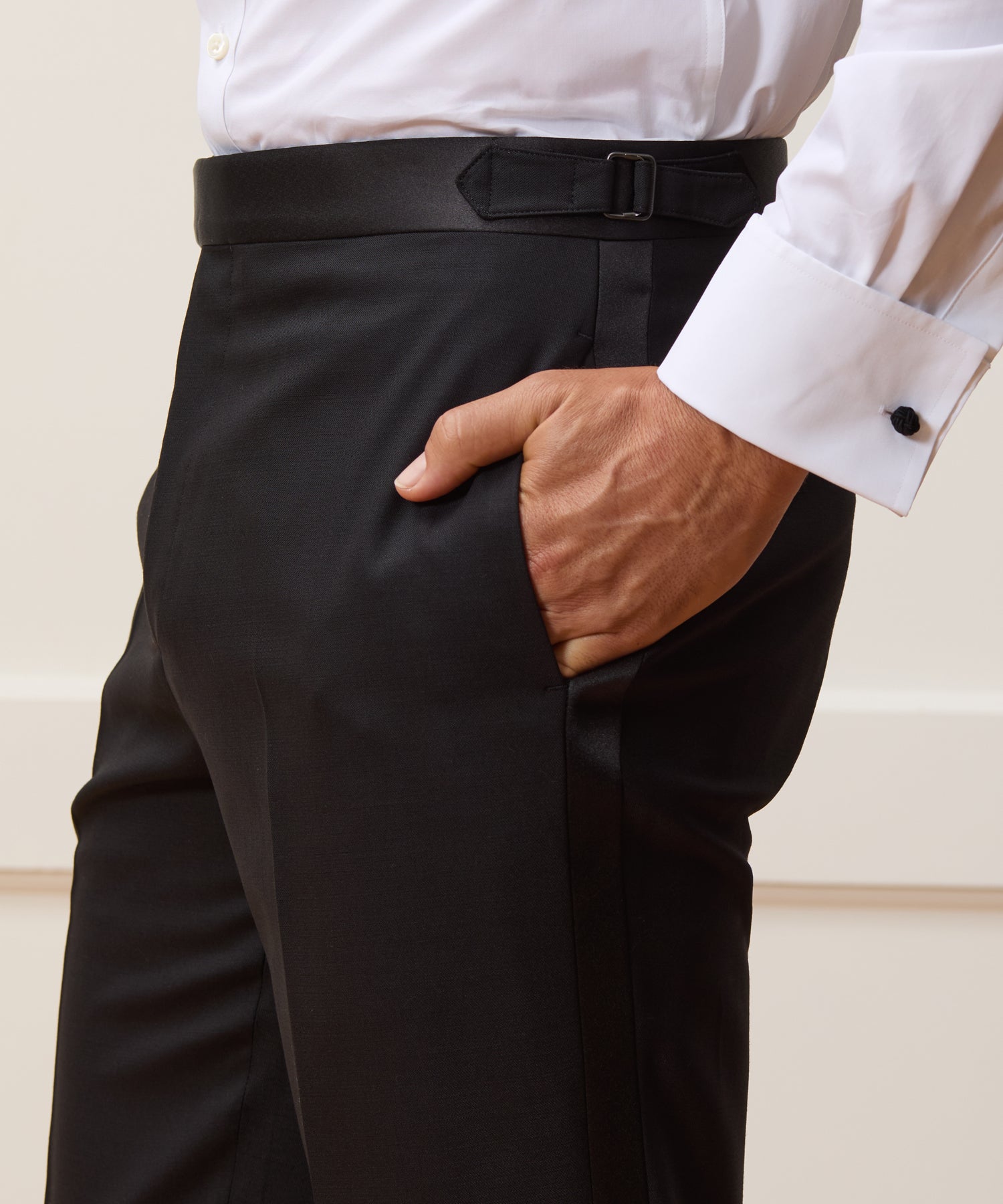 An essential for the sharp dresser, our luxurious Peak Lapel Collar Tuxedo is made at the renowned Tollegno Mill in Italy from a comfortable wool — classic, not too hot, soft, and woven with a bit of stretch for comfort.