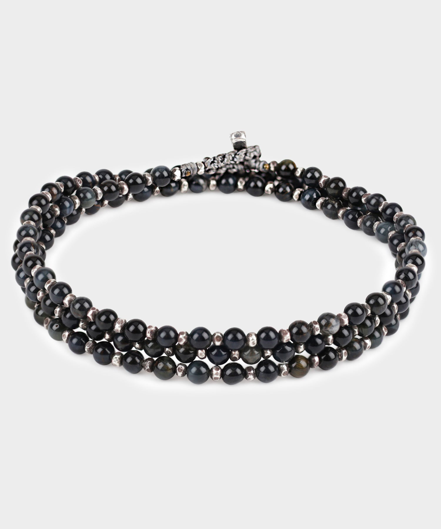 M. Cohen’s jewelry designs are constructed to convey the personality of the wearer. The Agora Bracelet/Necklace is designed with the intention to create a wrap bracelet or necklace to be layered with other elements. Take this black and sterling silver beaded piece — it’s crafted from flexible cord that fastens with a simple toggle closure, so it can be worn as both a necklace and a wrap-around bracelet.