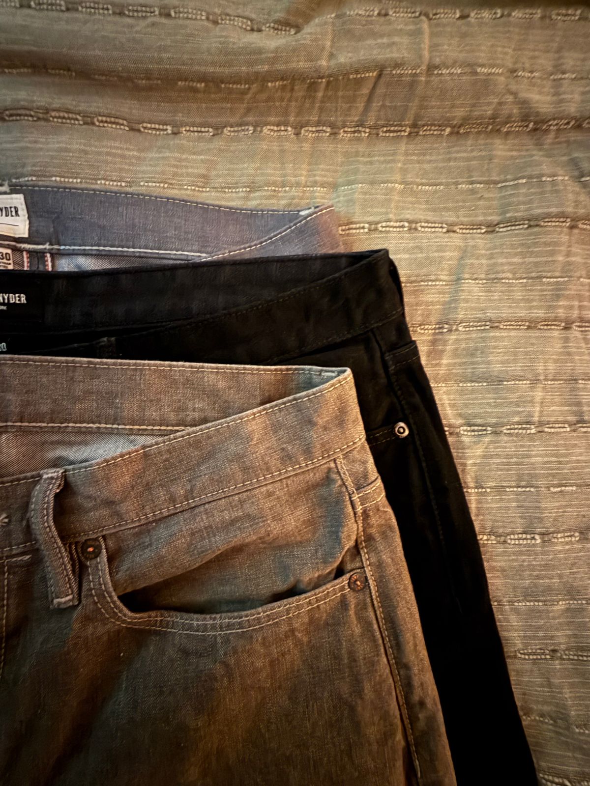 These jeans are perfect. I love the wash and the fit. The slim description is not your typical slim. They fit nicely and are not too slim on me. There is no stretch to this Jean either which I prefer. I know I’ll have these timeless jeans for a long time. Great style with a nice jacket or dressed down with my Birkenstocks.