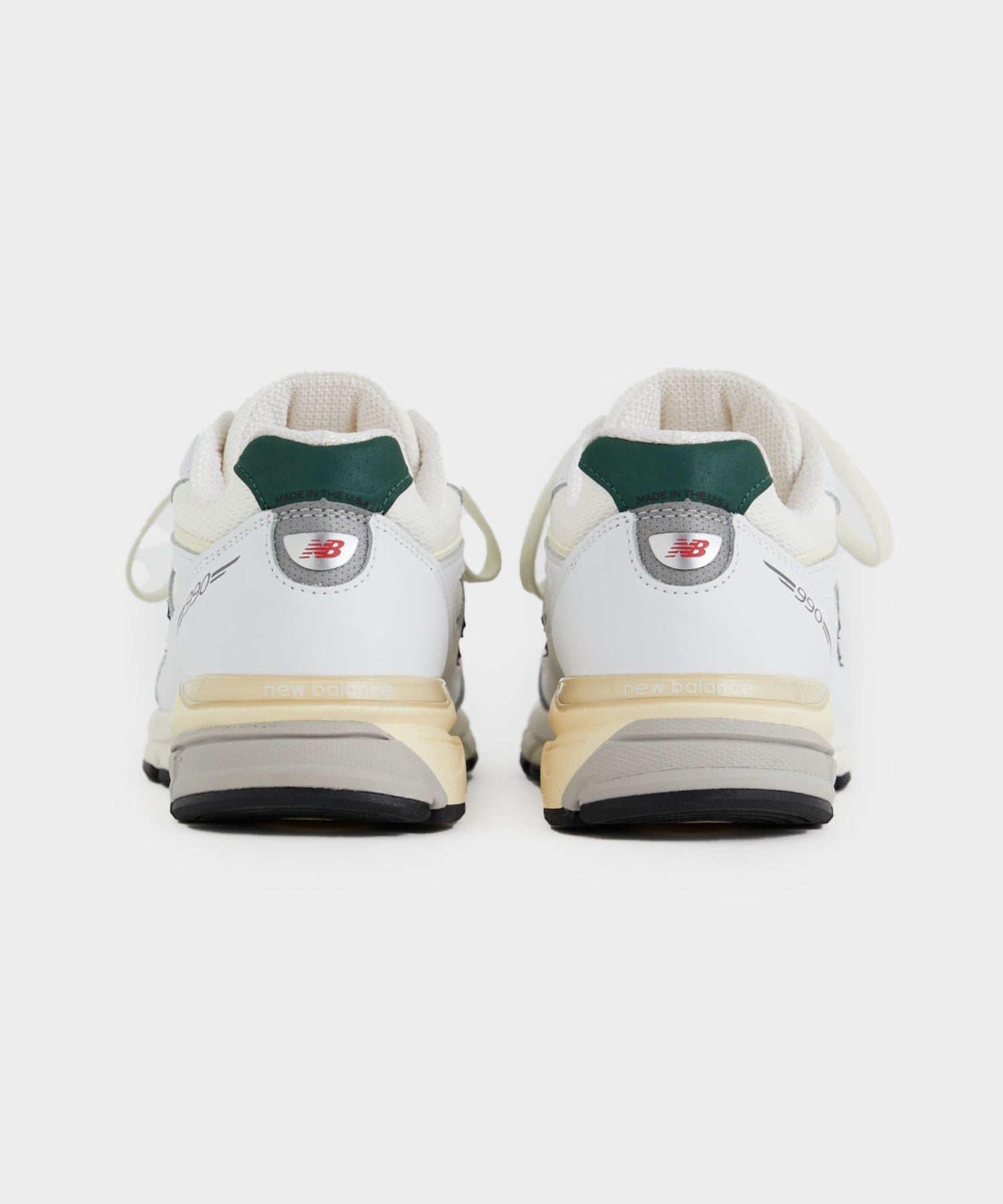 The Teddy Santis x New Balance 990v4 Made in USA ‘White Green’ dresses the lifestyle runner in a crisp, summer-ready palette. Breathable white mesh is utilized on the upper, fortified with tonal leather overlays and marked with a green ‘N’ logo on the quarter panel. Additional green accents land on the black tab and New Balance tongue tag. A splash of cream wraps around the heel of the ENCAP midsole, composed of lightweight foam with a durable polyurethane rim. The MADE in USA 990v4 featuring classic leather construction, in white with forest green accents.