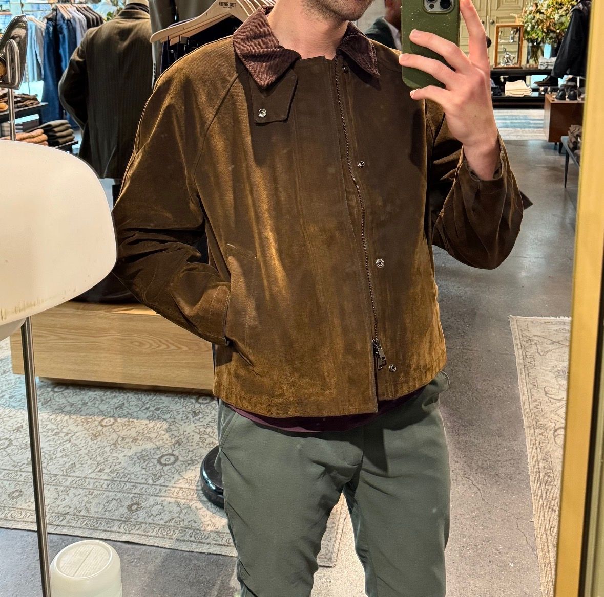 I’m someone who likes denim jeans, but has never really been a jean jacket guy. When I first spotted the Short Stable jacket online I was very intrigued by the fabric - and after a work conference took me to a city with a TS store, I had to swing by to check this jacket out. Within about 3 minutes I am afraid to admit I was ready to take it home - I don’t often by new TS, usually I hunt for sales or used items given my budget. This jacket has so much going for it - the cut is classic and timeless, and from a distance this might be mistaken for a suede biker jacket - but this fabric can get wet or splashed without worry, and it’s machine washable in a pinch! The fact it will patina similar to a raw denim is also just plain cool. I appreciate the thoughtful details like the two-way zipper for maximum flexibility in wear, the close-able neck flap and wrist snaps for if the wind picks up, and the sizable interior zippered pocket. All in all, an excellent light jacket that I’m looking forward to wearing for years and hopefully decades to come!