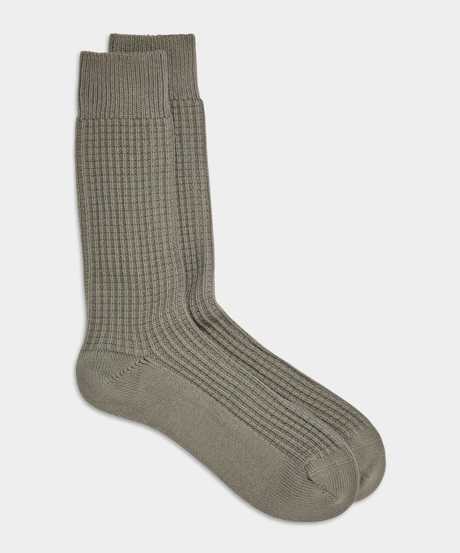 Meet the perfect every day sock. Made in Italy from a breathable stretch cotton, they absorb moisture well. The plush waffle texture provides just enough cushioning while still being lightweight, and ribbing keeps them in place on your ankle.