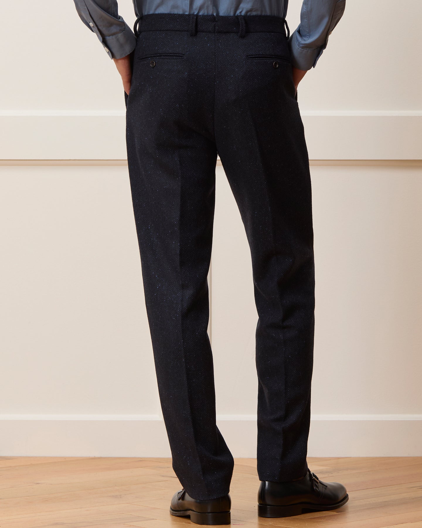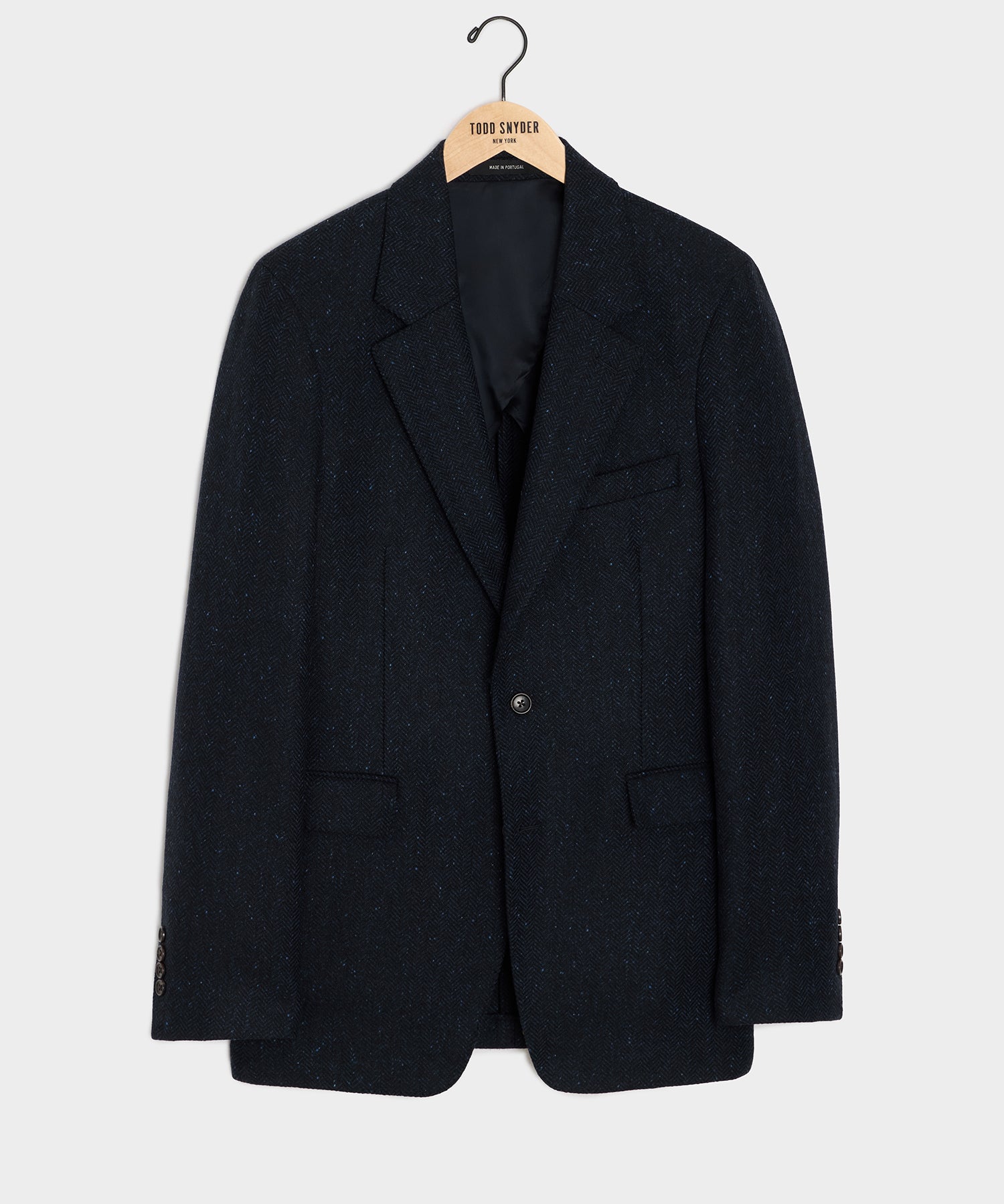 The Sutton is cut to a slim, tailored fit and it’s crafted from an Italian wool blend Donegal, woven with a herringbone pattern for added texture and softness, in a classic dark navy.