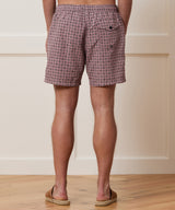 Our pull-on surf short, known as the Montauk, is a luxe upgrade on a classic board short or “baggie,” made from a quick-drying Portuguese fabric with a gently crinkled look and feel and a slight sheen to it. Design details include an elastic drawstring waist, fine mesh liner, a self-draining back pocket and a key holder — so you can safely secure your car keys before hitting the surf. These hit at mid-thigh, and are intended to look equally chic whether you’re on land or out on the water.