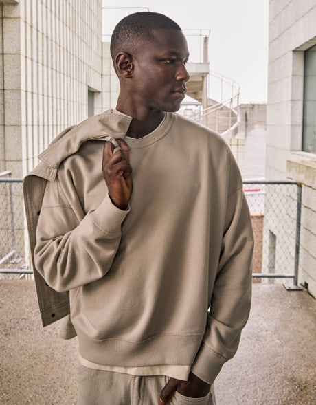Unlike our classic Champion sweat pant, this style features a relaxed, oversized fit and dry hand feel. This sweat pant is made from a mid-weight cotton French terry that feels broken-in from the get-go. The relaxed silhouette and heavy fabric is inspired by some of our favorite styles from the 80s and 90s, with ample room through the leg and a little extra length for an intentionally “puddled” look at the ankle. Premium details include a concealable drawstring at the elastic waist, and a fabric that’s specially knit to resist vertical shrinkage, so it stays true to size and gets better with time.