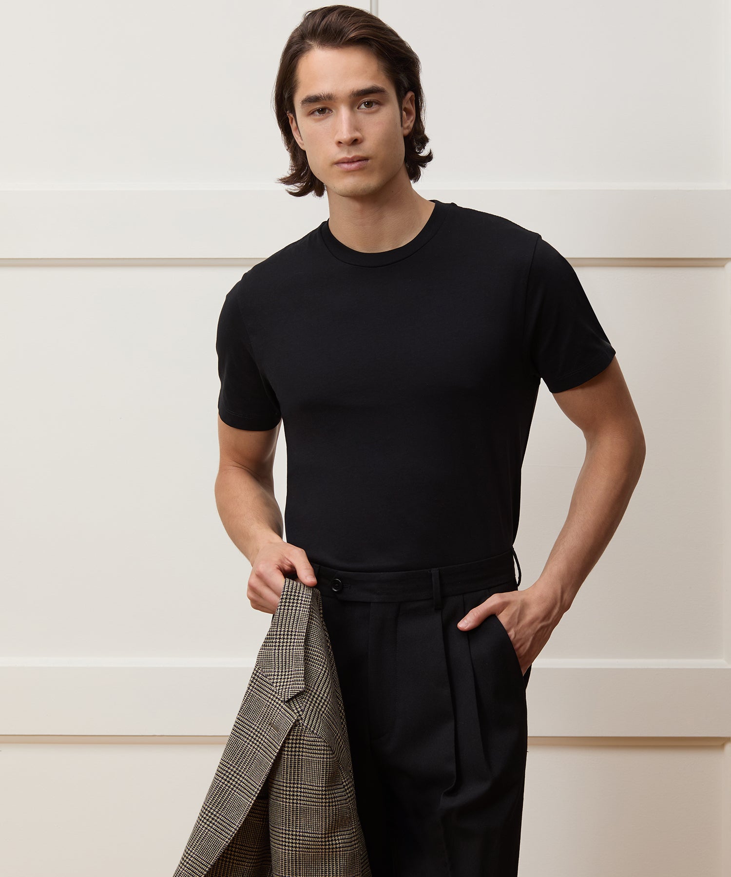 This clean, classic tee is a year-round staple. It’s crafted from an all-cotton fabric we call “Premium Jersey.” Named for the largest of the Channel Islands where it originated, off the French coast of Normandy, Jersey is both solid and opaque, but also soft and breathable. Its structure gives it good drape and makes for an excellent base layer. Ours is made from piece-dyed and garment-washed Portuguese cotton, which has a smooth, dense, extra-soft handfeel. The ultimate basic, this tee is always down to smarten up a pair of jeans or get to work under a suit.