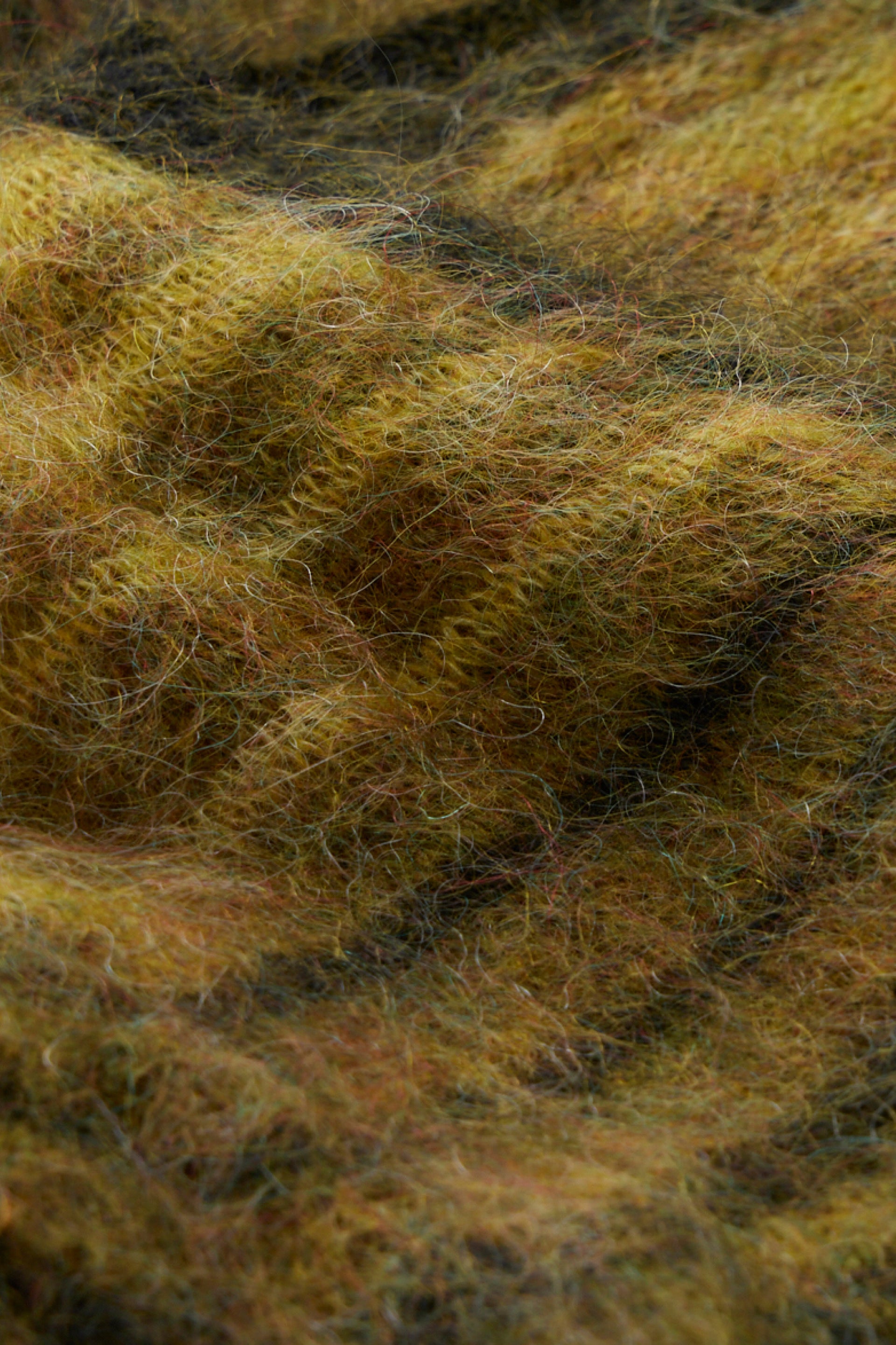 Mohair yarn comes from the hair of the Angora goat, and it’s prized for its luster and durability; when it’s brushed, it gets an extra fuzzy look and feel.