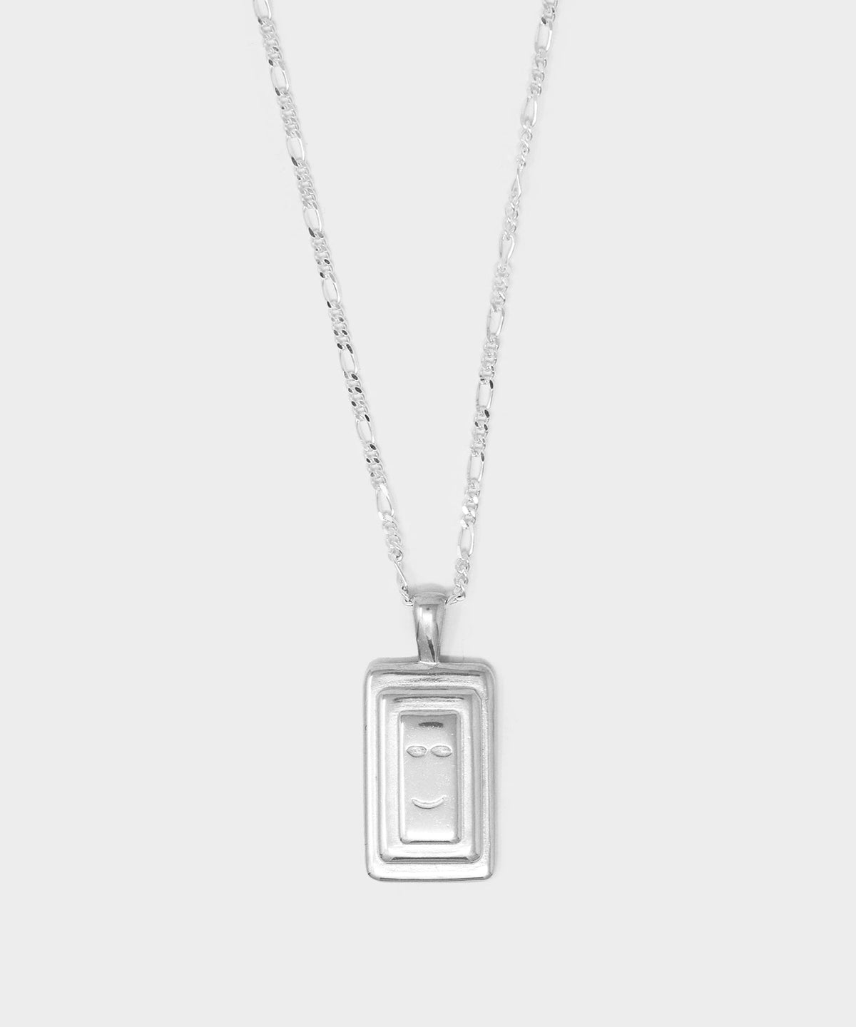 Finely cast and hand finished in London from sterling silver, this charming necklace features a high-polish finish and a reversible rectangle silhouette with a face design – a witty addition to your everyday jewelry line-up.