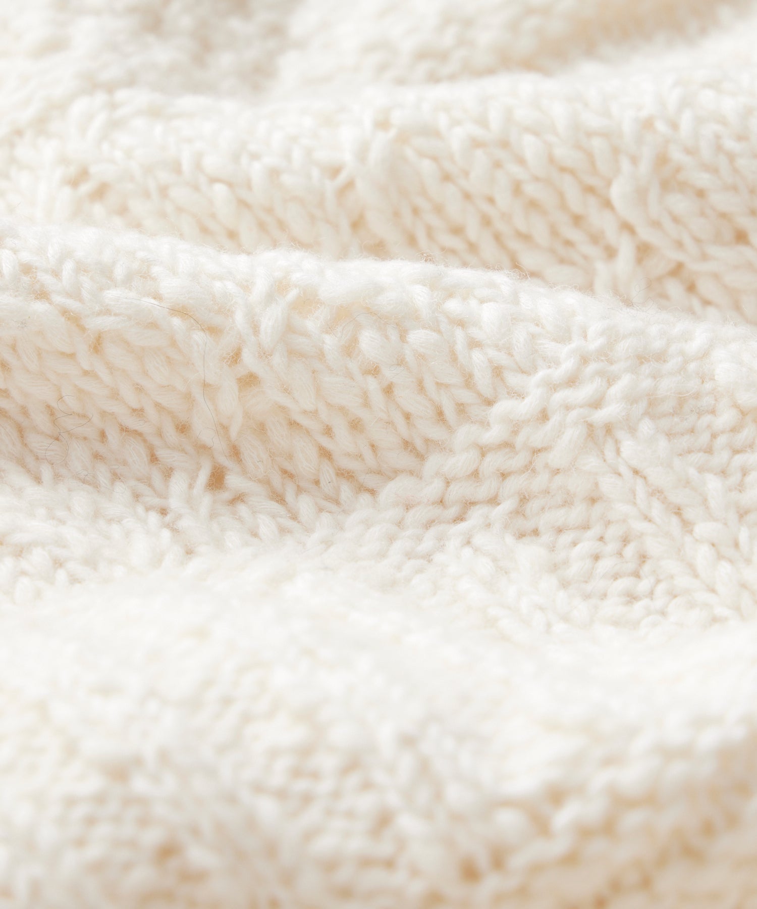 Inspired by a traditional fisherman’s sweater from Ireland’s Aran Isles, this Funnel Neck Sweater is knit from a breathable (but still warm) blend of organic cotton, wool, and baby alpaca fibers. “Baby,” by the way, refers to the extra-soft feel of the yarn — not the age of the animal it’s gathered from. Two different textures create a tonal stripe: ribbing and seed stitches in an argyle pattern, set alongside garter-stitched chains. An easy mock neck and ribbed trim complete this classic silhouette.