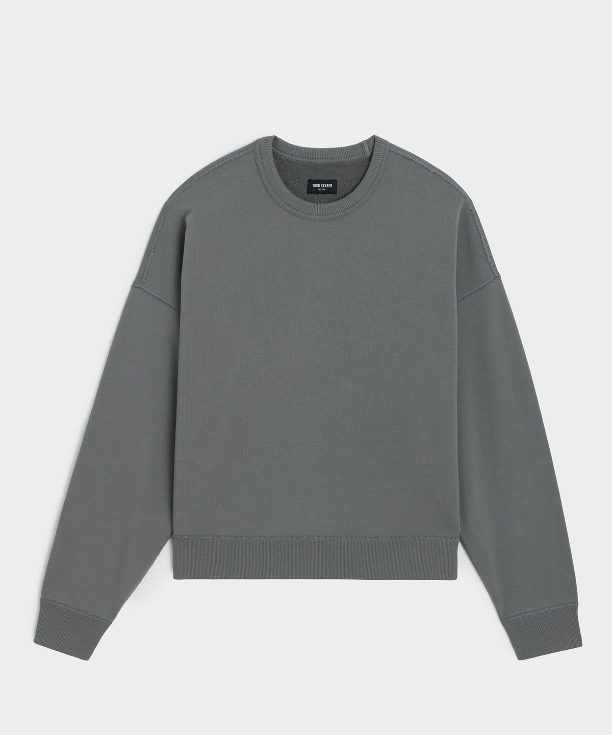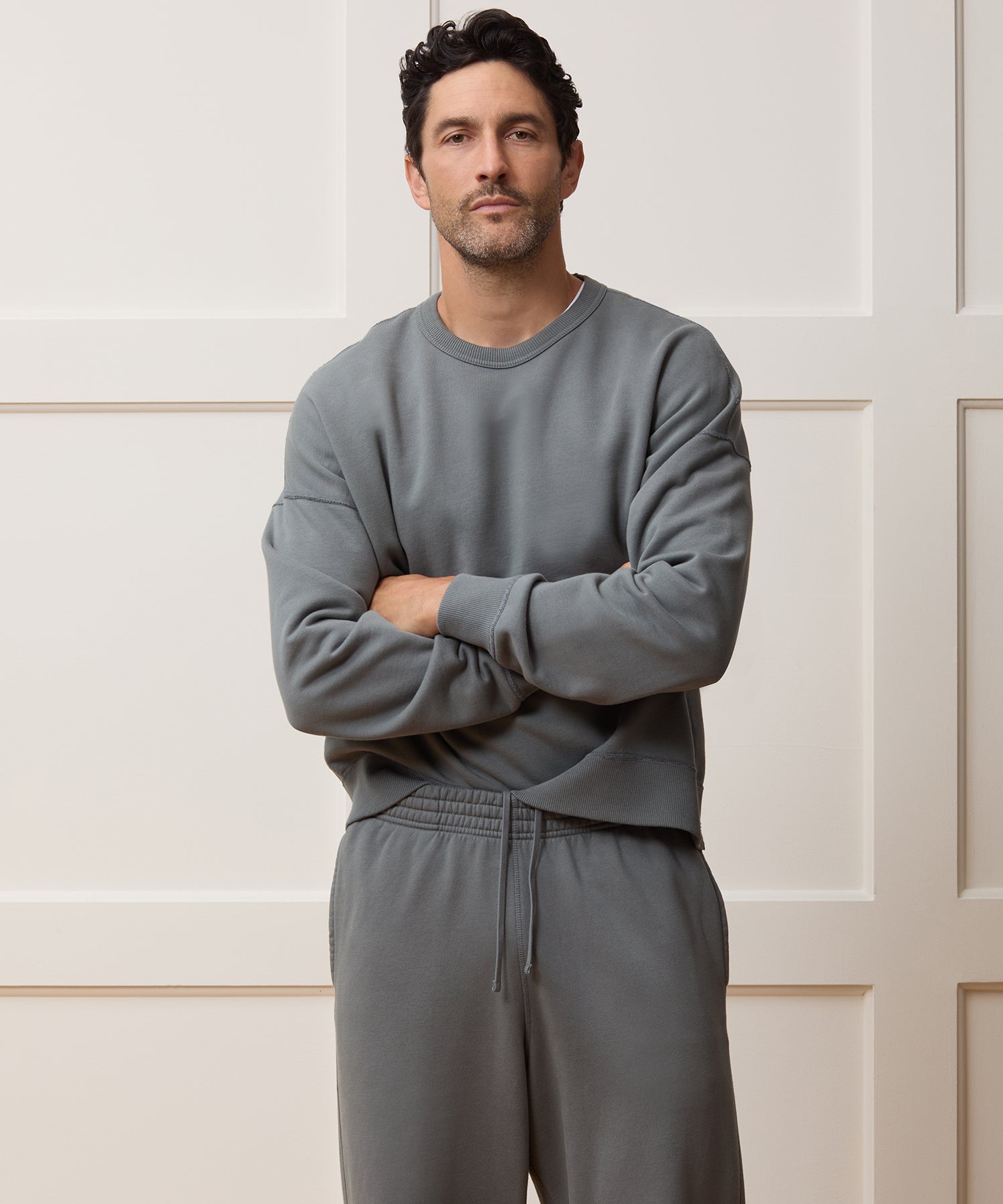 Timeless comfort meets modern style in this Terry Crewneck. The Portuguese cotton terry clocks in at a heavy 435 grams per square meter, and has an old-school handfeel: dry and dense, but soft. The ribbing at the cuffs and hem, as well as the flatlocked seams throughout, continue the vintage-inspired detailing. The twist is in the fit: an on-trend, slightly cropped silhouette meant to taper at the waist, with gently dropped shouders and a generous amount of room through the chest. Style tip: Wear it with a pair of high-waisted pants for a serious proportion play.