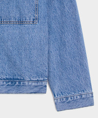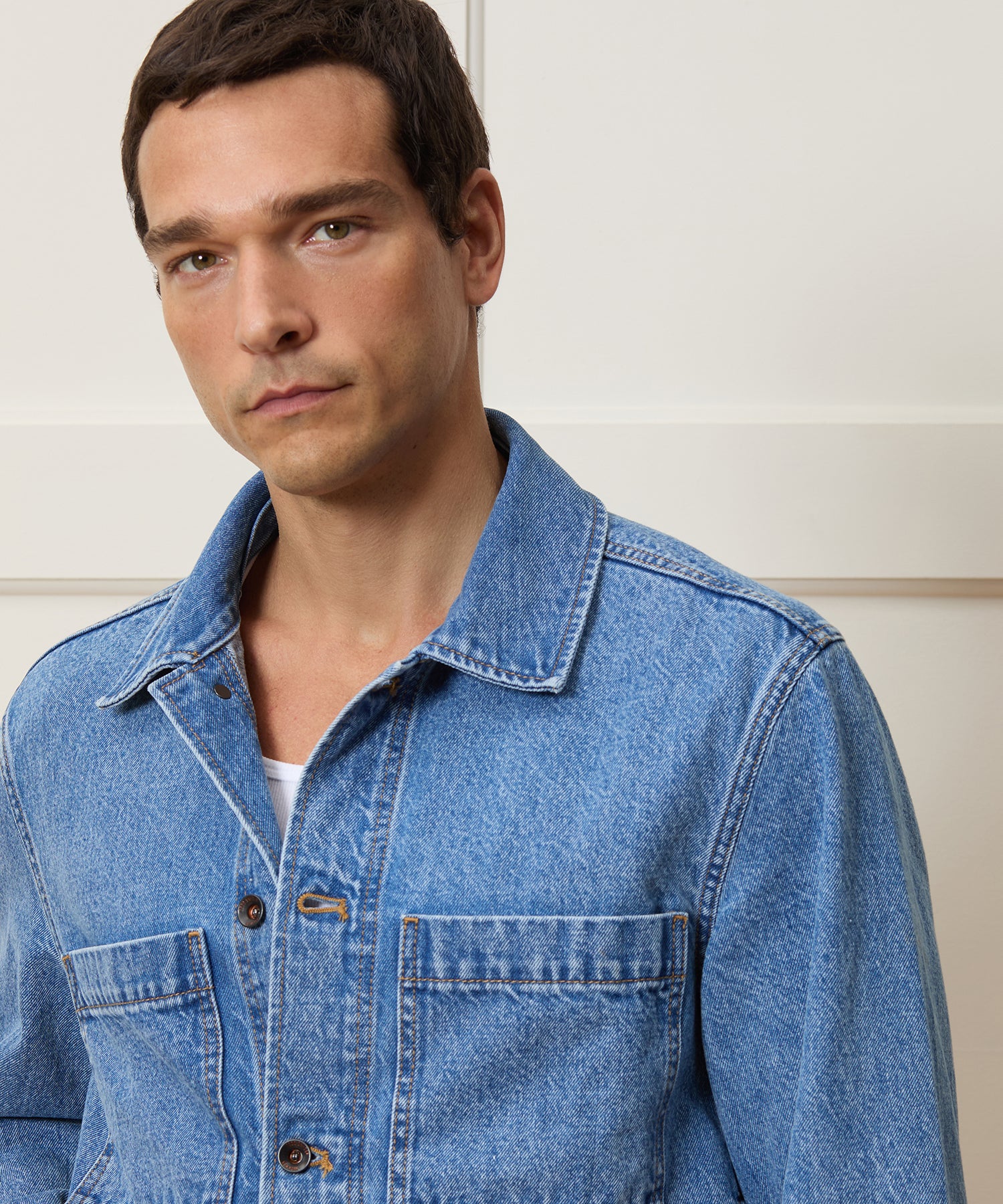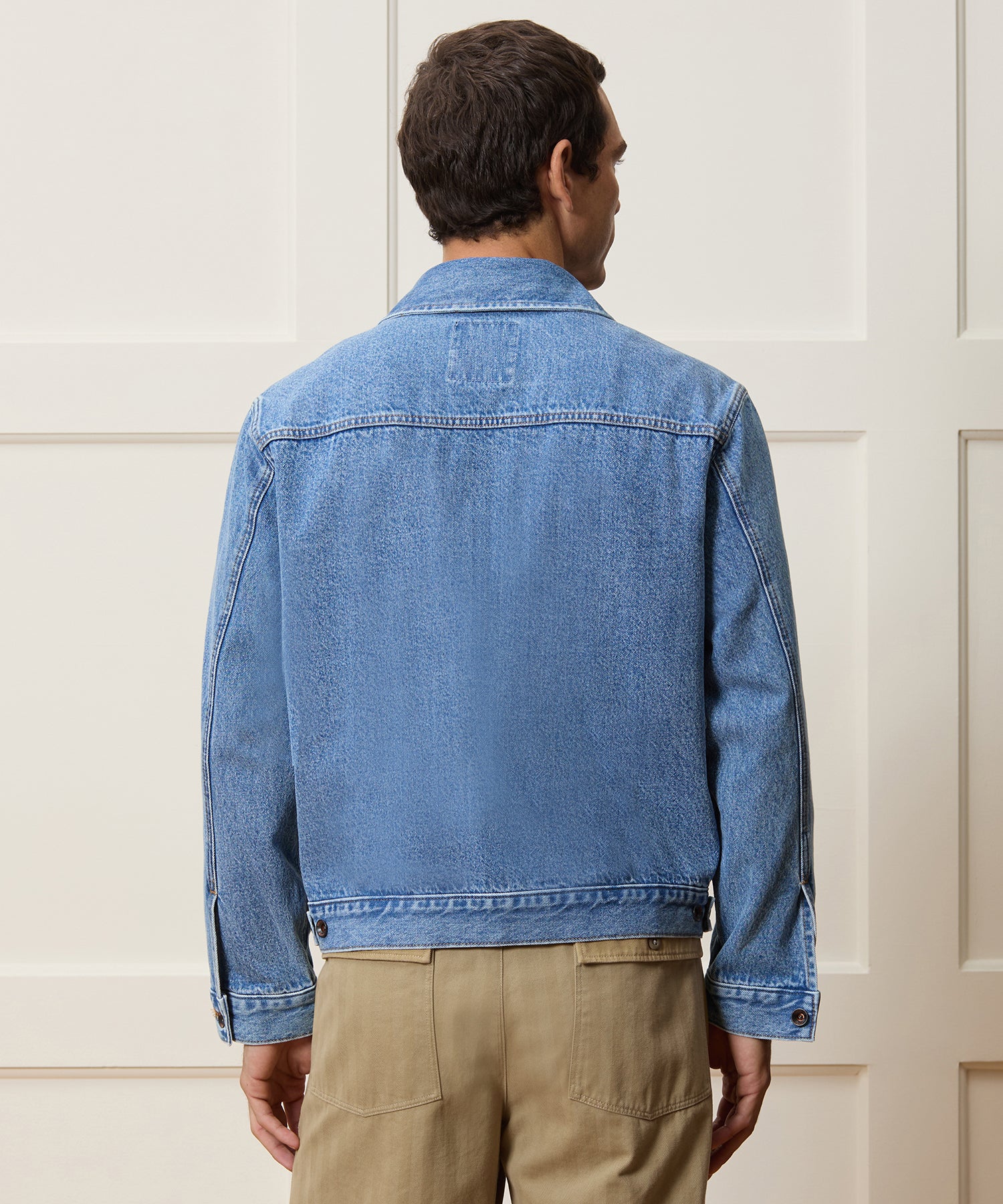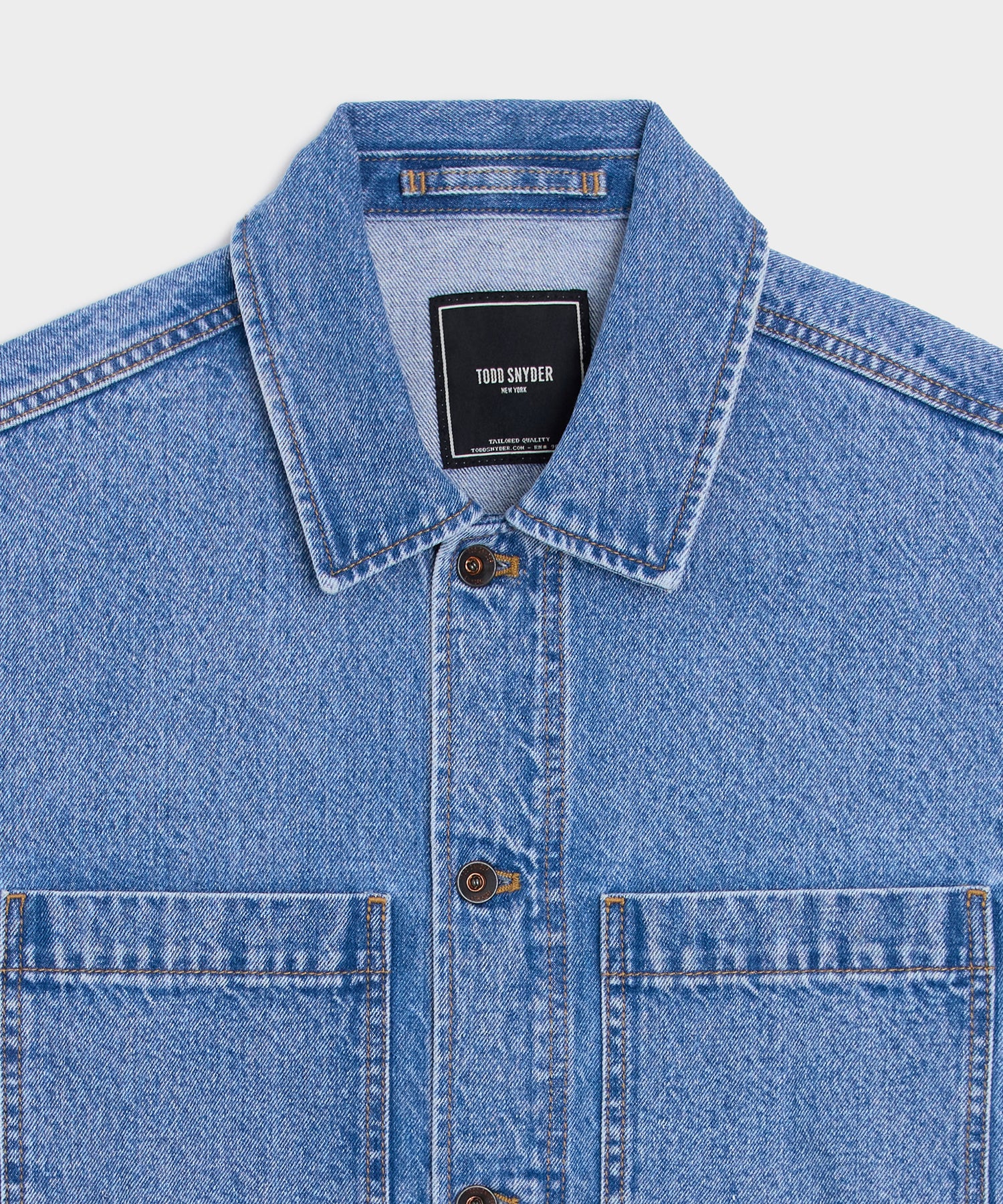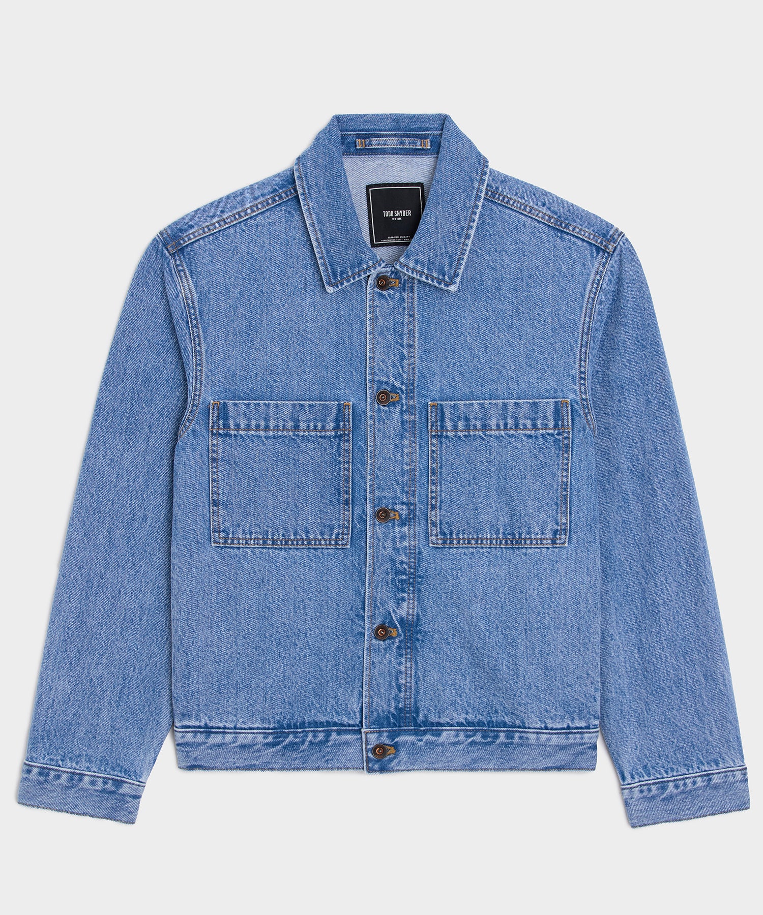 Inspired by mid-century American workwear, Todd has reimagined the iconic denim jacket for the modern sensibility. The fabric is a light indigo wash denim with classic contrast gold stitching. Details include shank buttons at the cuffs, placket and the tabs at the waist, which you can adjust for the perfect fit. It has a modern, boxy, slightly oversized silhouette, with a slightly dropped shoulder and clean detailing throughout. Perfect over a tee when it’s warm out and a sweater when it’s not, it’s an excellent way to play with proportions.
