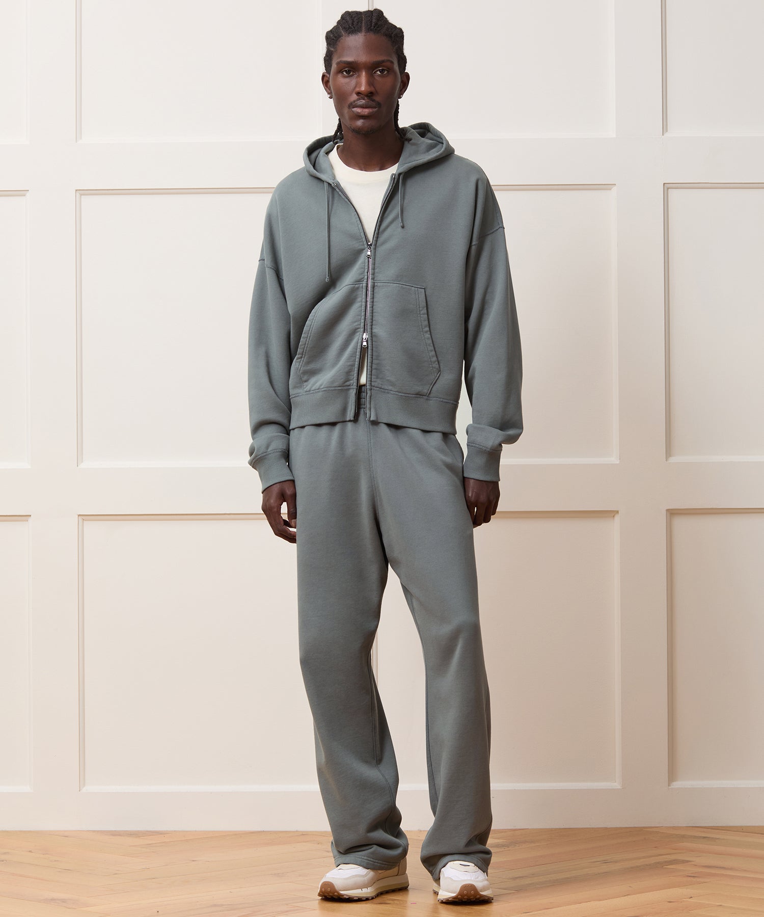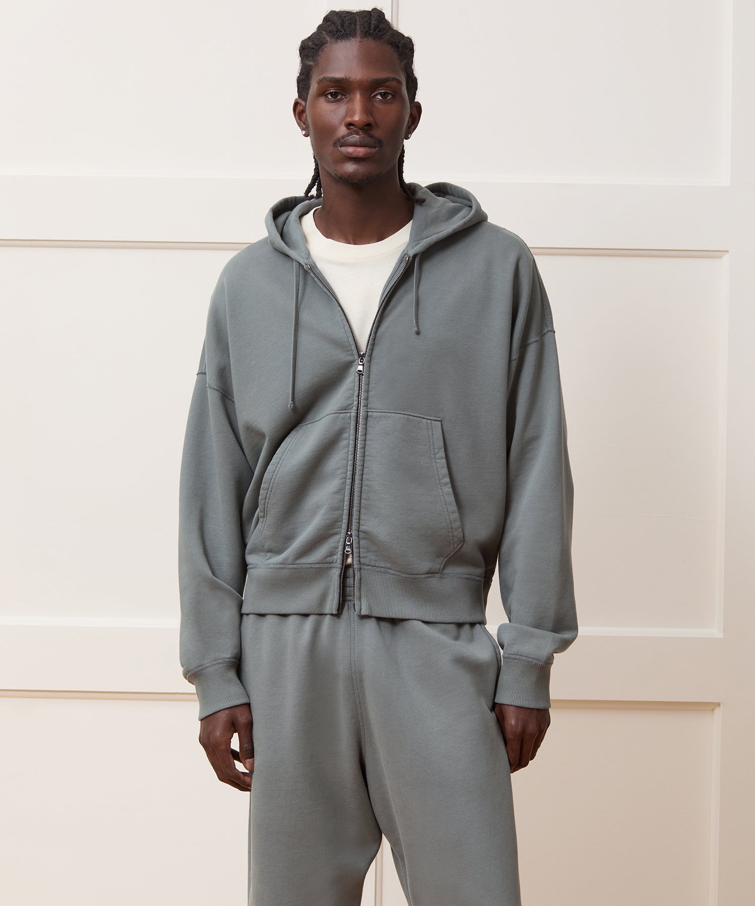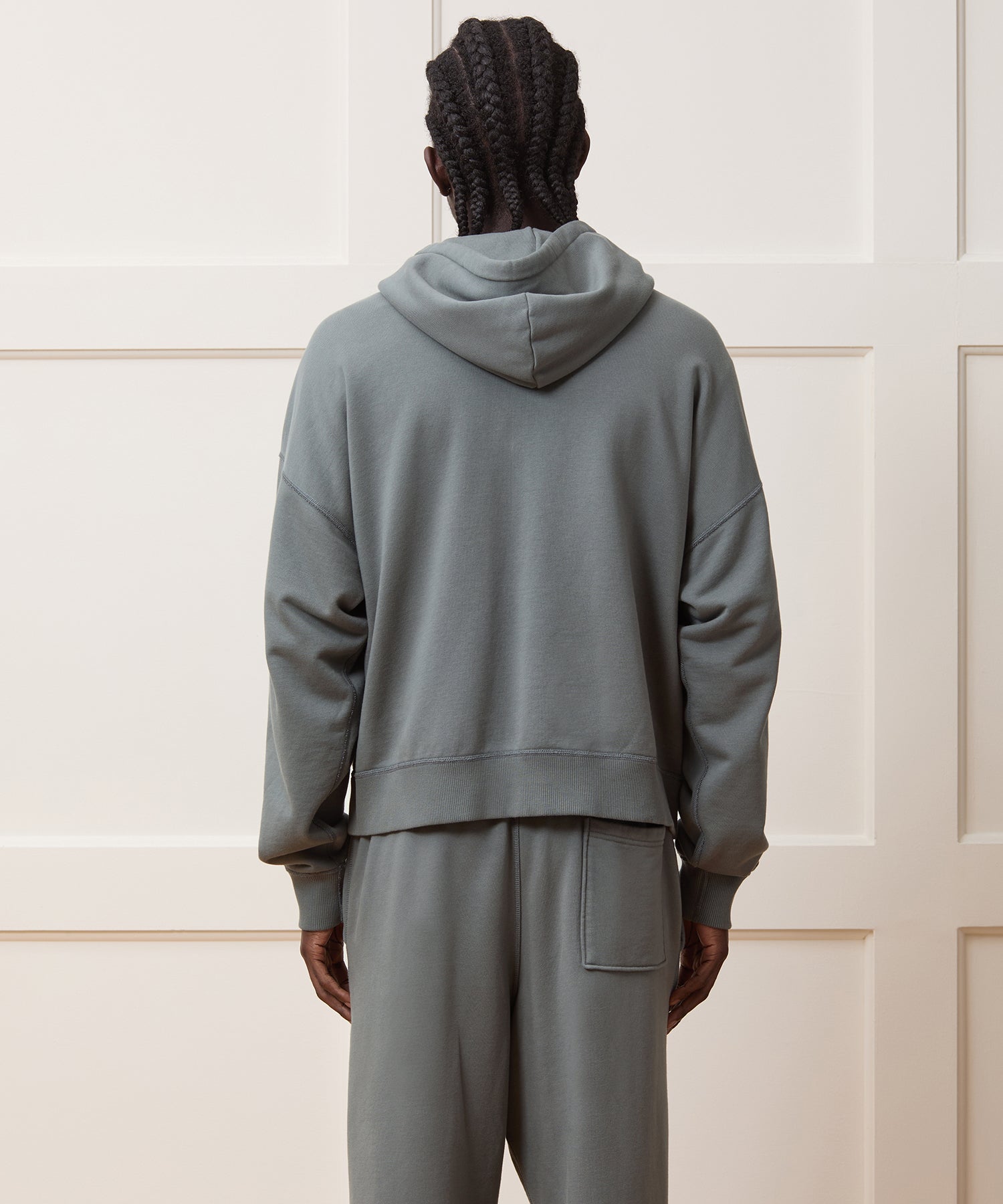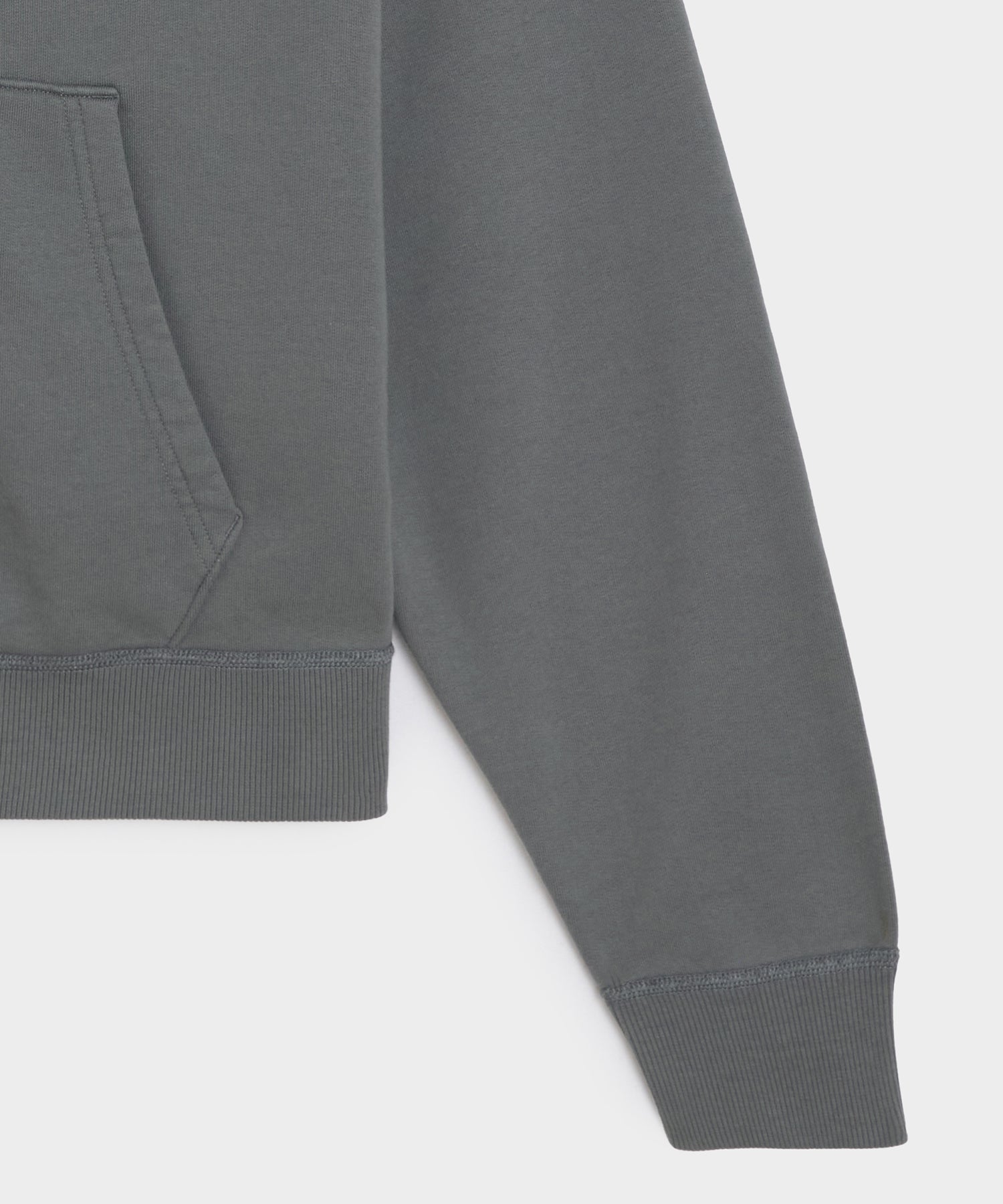 Timeless comfort meets modern style in this Terry Hoodie. The Portuguese cotton terry clocks in at a heavy 435 grams per square meter, and has an old-school handfeel: dry and dense, but soft. The ribbing at the cuffs and hem and the sturdy, double-layered drawstring hood continue the vintage-inspired detailing. A clean, minimal silhouette lets the on-trend, slightly cropped fit take center stage.