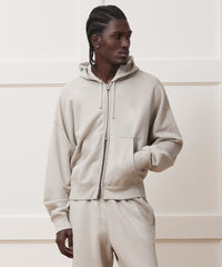 Timeless comfort meets modern style in this Terry Hoodie. The Portuguese cotton terry clocks in at a heavy 435 grams per square meter, and has an old-school handfeel: dry and dense, but soft. The ribbing at the cuffs and hem and the sturdy, double-layered drawstring hood continue the vintage-inspired detailing. A clean, minimal silhouette lets the on-trend, slightly cropped fit take center stage.