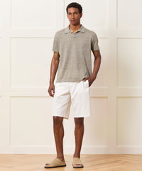 An iconic menswear staple, the pique polo adds a touch of casual sophistication to any look, whether you wear it on its own or under a sport coat. Here, it’s made from a Turkish blend of linen and cotton with a crisp but soft handfeel and the classic subtle waffle texture of a pique. This particular polo has a classic fit: not too slim and not too oversized, it’s the perfect dress-it-up or dress-it-down shirt. It sports our signature Montauk collar, a buttonless style that’s often referred to as a “Johnny” collar.
