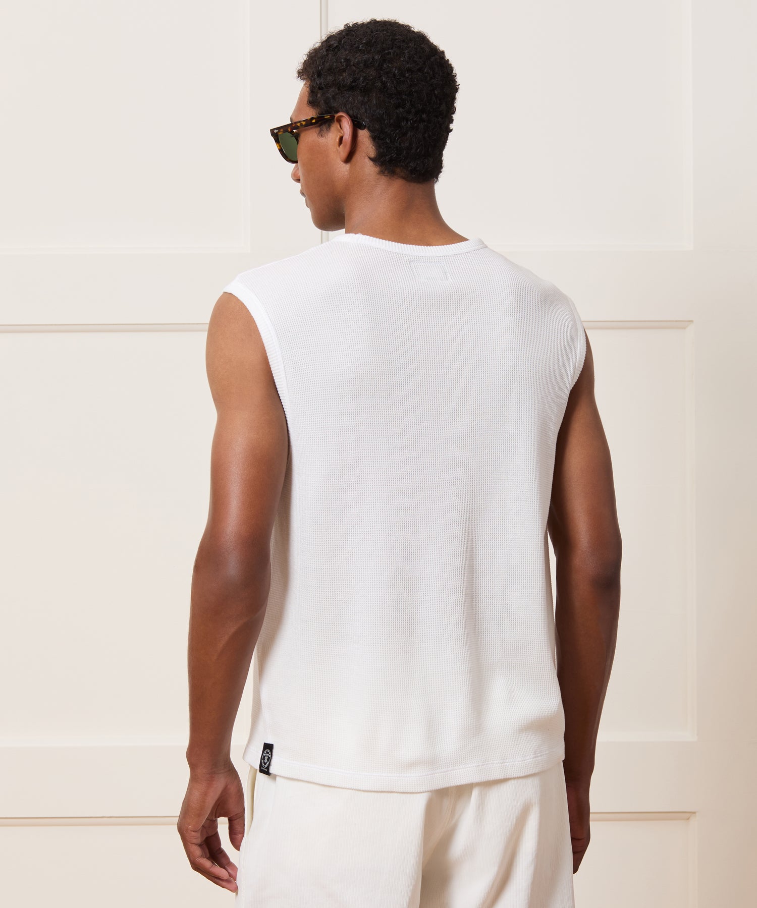 Consider this tank a way to channel sweater vest vibes in the warmer months. It’s made from a lightweight and breathable waffle cotton with a soft, plush texture. The collar and arm holes aren’t too low, and the whole tank has a classic, body-skimming fit that works just as well worn solo as it does layered.
