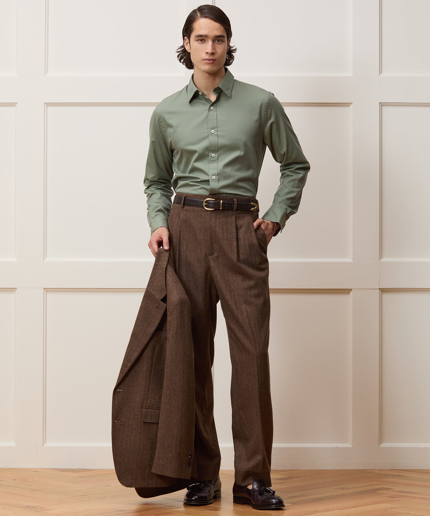 This luxurious dress shirt is a chic update on a closet essential. Expertly constructed for a flattering fit, it’s crafted from a handsome all-cotton twill with a soft, almost silky handfeel — and it’s the perfect weight to wear between seasons, too. Point collars, by the way, are a bit more traditional than spread collars, which are the same length, but in a point collar, the points themselves are closer together. This shirt is bound to become your new go-to for any occasion that calls for putting your best foot forward.