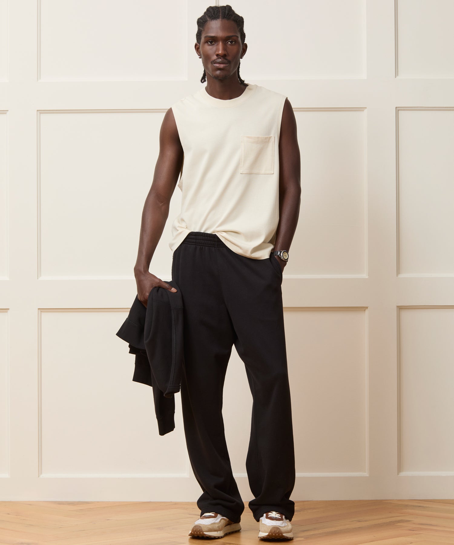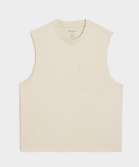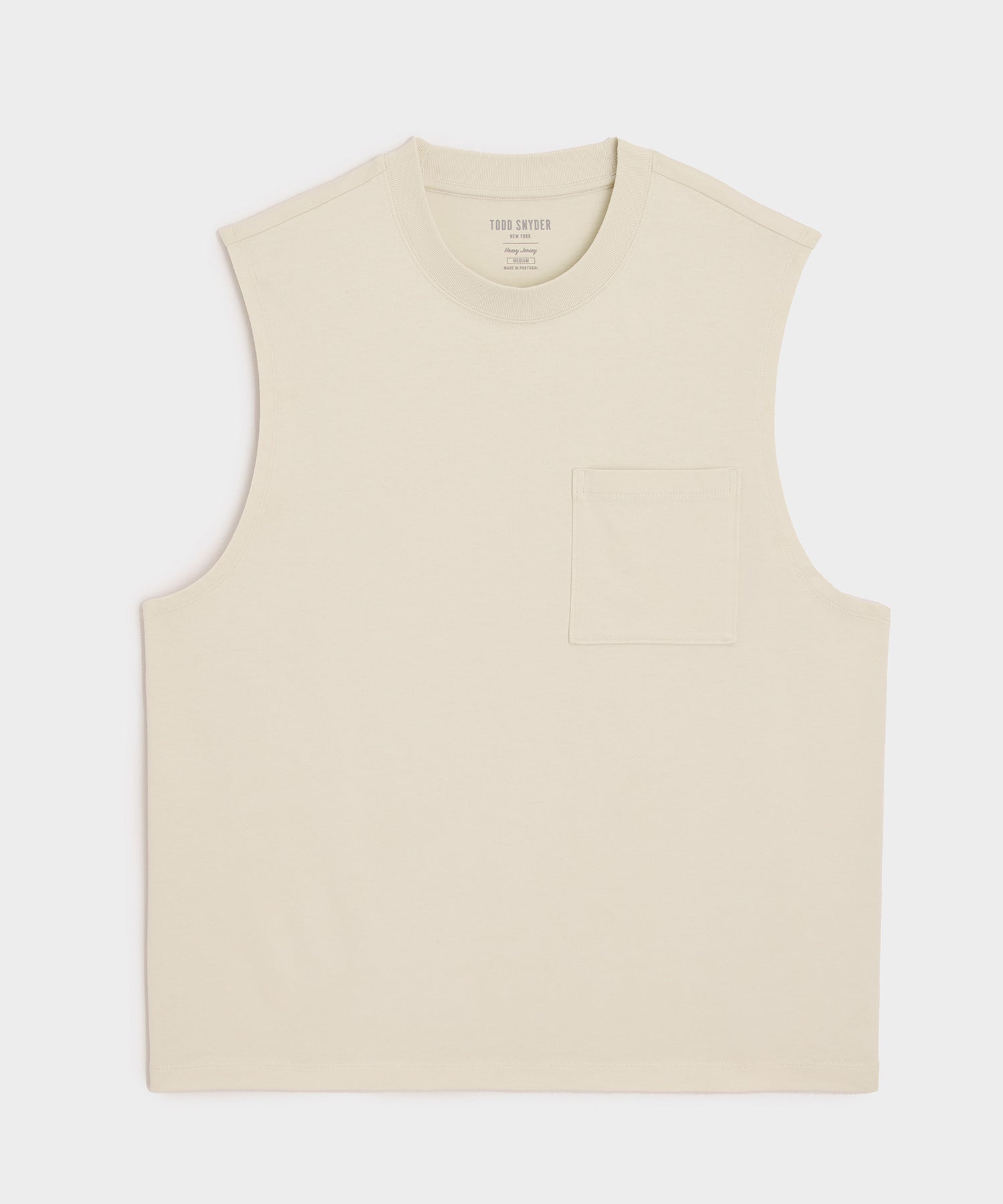The perfect muscle tank. Crafted from a heavyweight cotton Jersey and made in Portugal, this tank taps into the relaxed trend and looks great with everything from high-waisted dress trousers to your favorite denim. The higher neck and pocket give it a vintage 80s feel. We’d recommend wearing this one true to size, or even sizing up for an extra roomy fit.