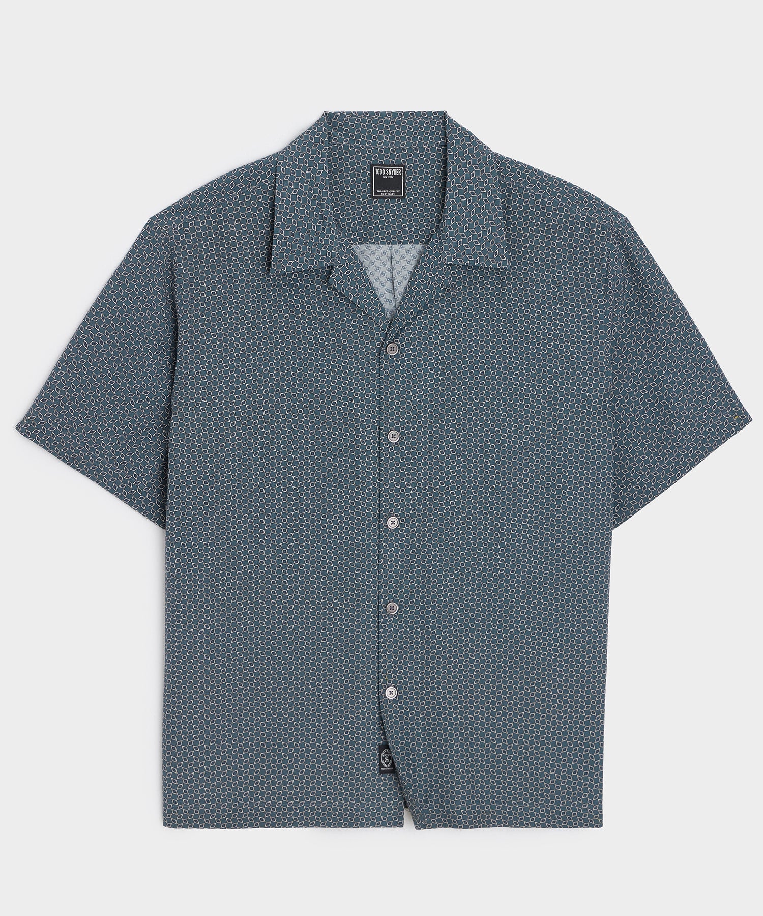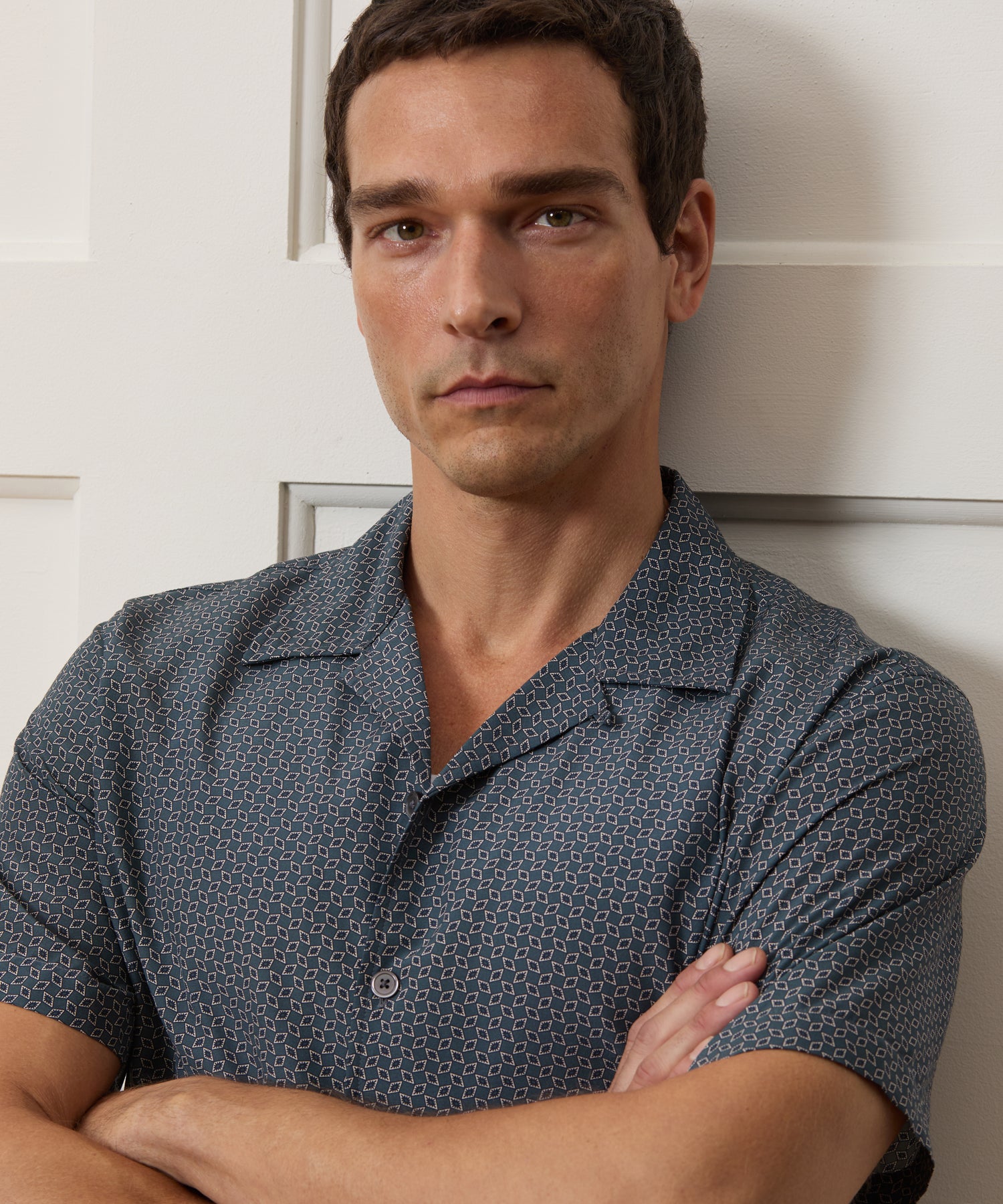Our comfortable Camp Collar Shirts are a year-round favorite for effortlessly cool vibes. This one is made from a lightweight silk and cotton blend, with a small geometric print inspired by 80s foulard ties. Cut with an on-trend, boxy fit, it's just the thing for days when you want something easy to pop on that still makes an impact.
