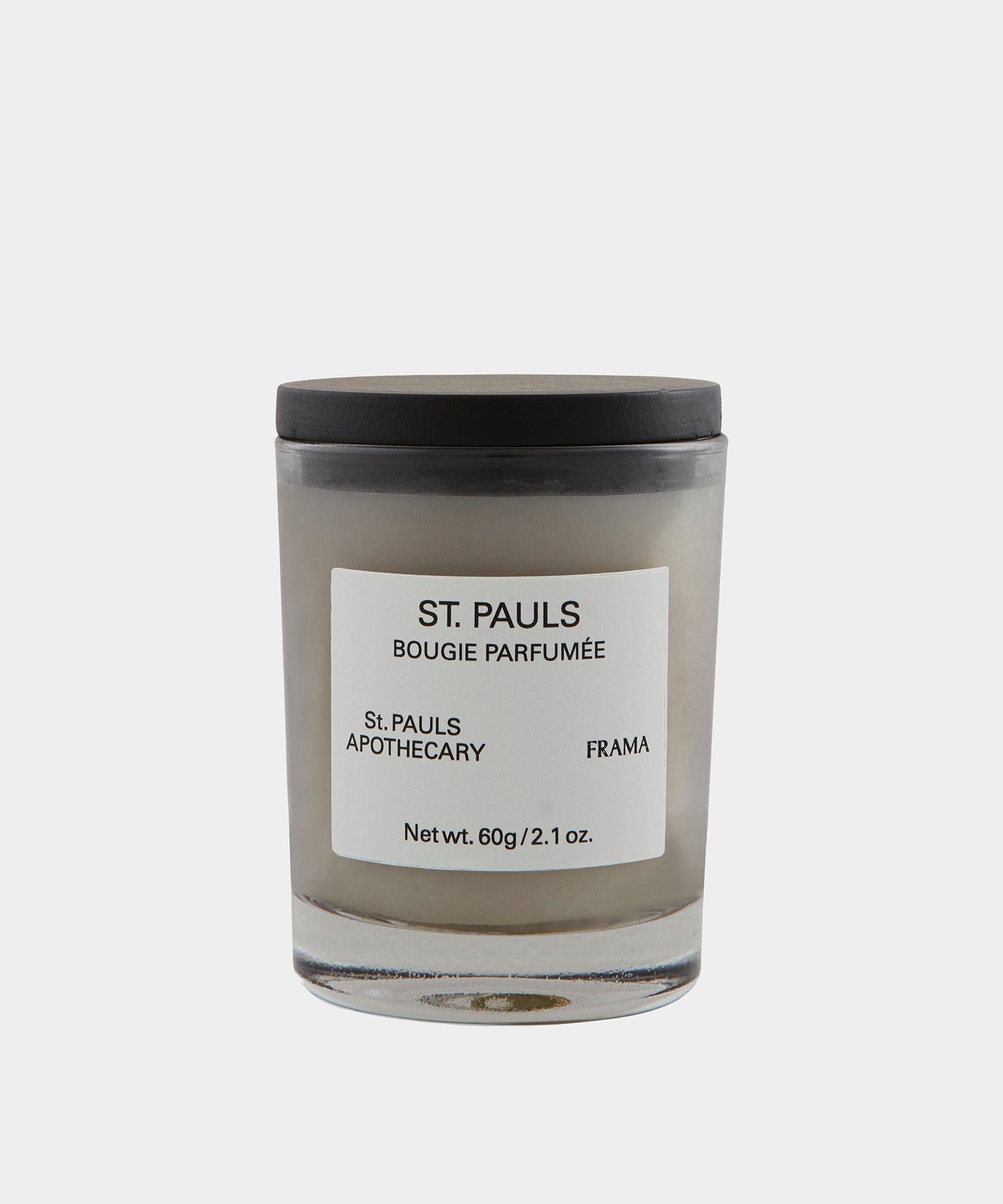 In the suggestive ritual of turning light into fragrance to enhance spatial experiences, St. Pauls Scented Candle sets an ambiance in the surrounding space with a comforting and evocative scent. St. Pauls, FRAMA's signature fragrance and the Apothecary Collection's first scent, is a complex yet delicate essence. With an earthy formulation and distinctive freshness, it embodies the epitome of FRAMA. Wooden cabinets and tinted glass. Where past and present seamlessly intertwine.