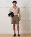 Our Tab Short has a silhouette that features a belt loop waist with an extended tab closure, with a clean, flat front. A mid-length 7” inseam and a slightly taller rise gives these a classic feel, and they’re versatil enough to wear them higher on your waist or lower on your hips. They’re made from an Italian gabardine, a type of twill worsted wool first introduced in the late 19th century. Lightweight, breathable and durable, our take is a transitional weight 4-ply wool with perfect drape. Because of their tailored details, these shorts can dress up a casual look or dress down a formal one — in other words, they’re perfect for beach weddings and other summer events.