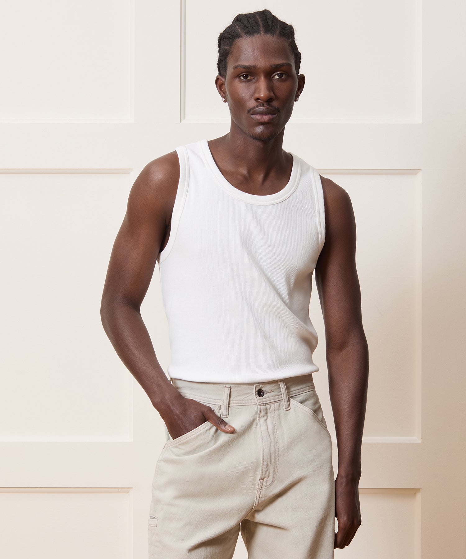 Elevate your basics with this chic Crewneck Tank. The higher-than-usual neck is on-trend, and it’s crafted from premium Portuguese cotton that’s breathable and soft. Light ribbing adds dimension, while the longer length allows for easy tucking. Perfect for any occasion, worn solo with trousers or even layered under a suit jacket — snag one (or three), and thank us later.