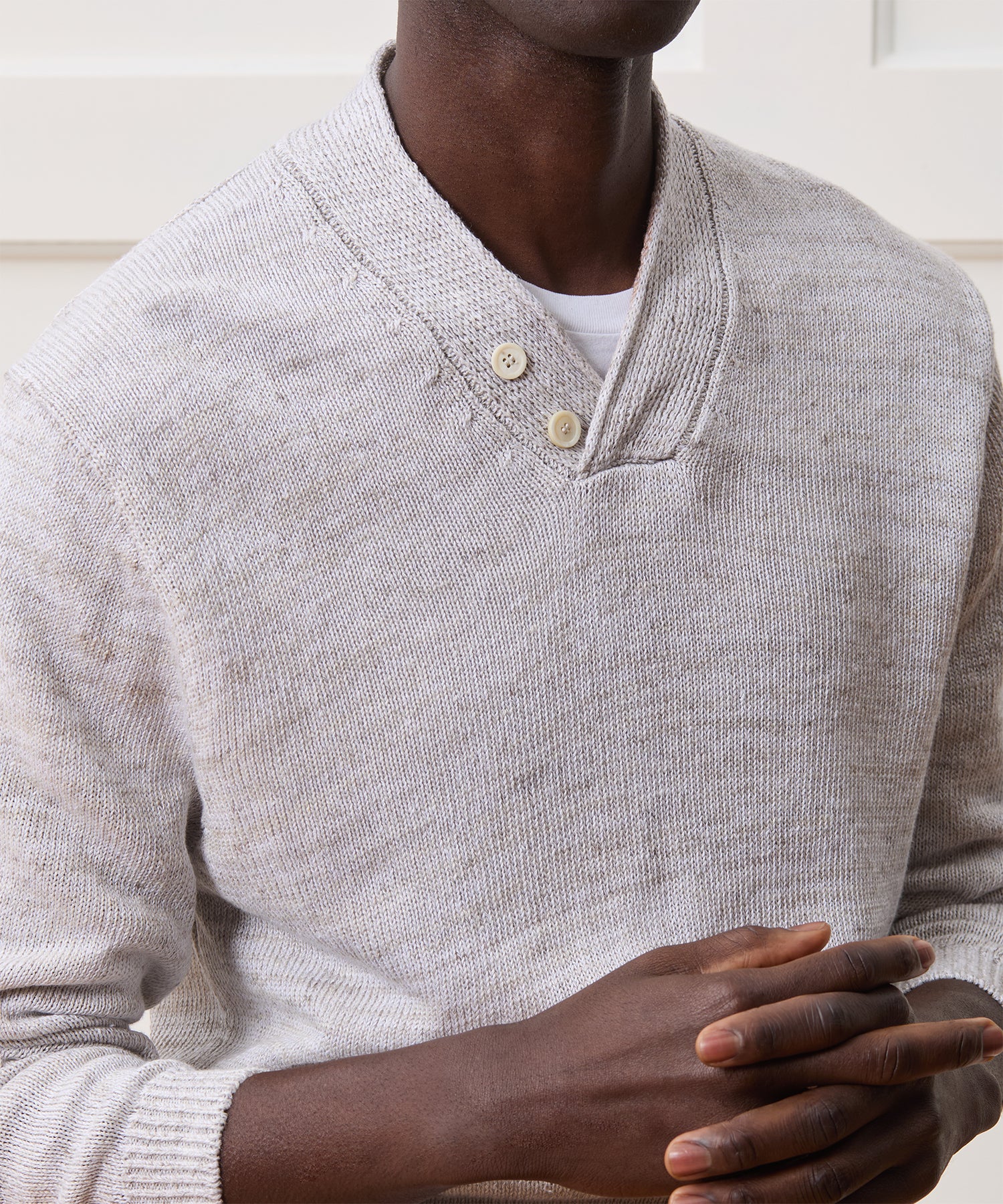 Modeled off a classic fisherman sweater, this v-neck is knit from pure Irish linen and dyed a marled, smoky shade. It’s the perfect weight for layering over a tee or under a jacket when temps are cooler, and light enough to wear all on its own when things warm up. The buttons are decorative, but if you were so inclined, you could snip open the hole on the other side to button it shut. It’s made by the experts at Inis Meáin Knitting Company.