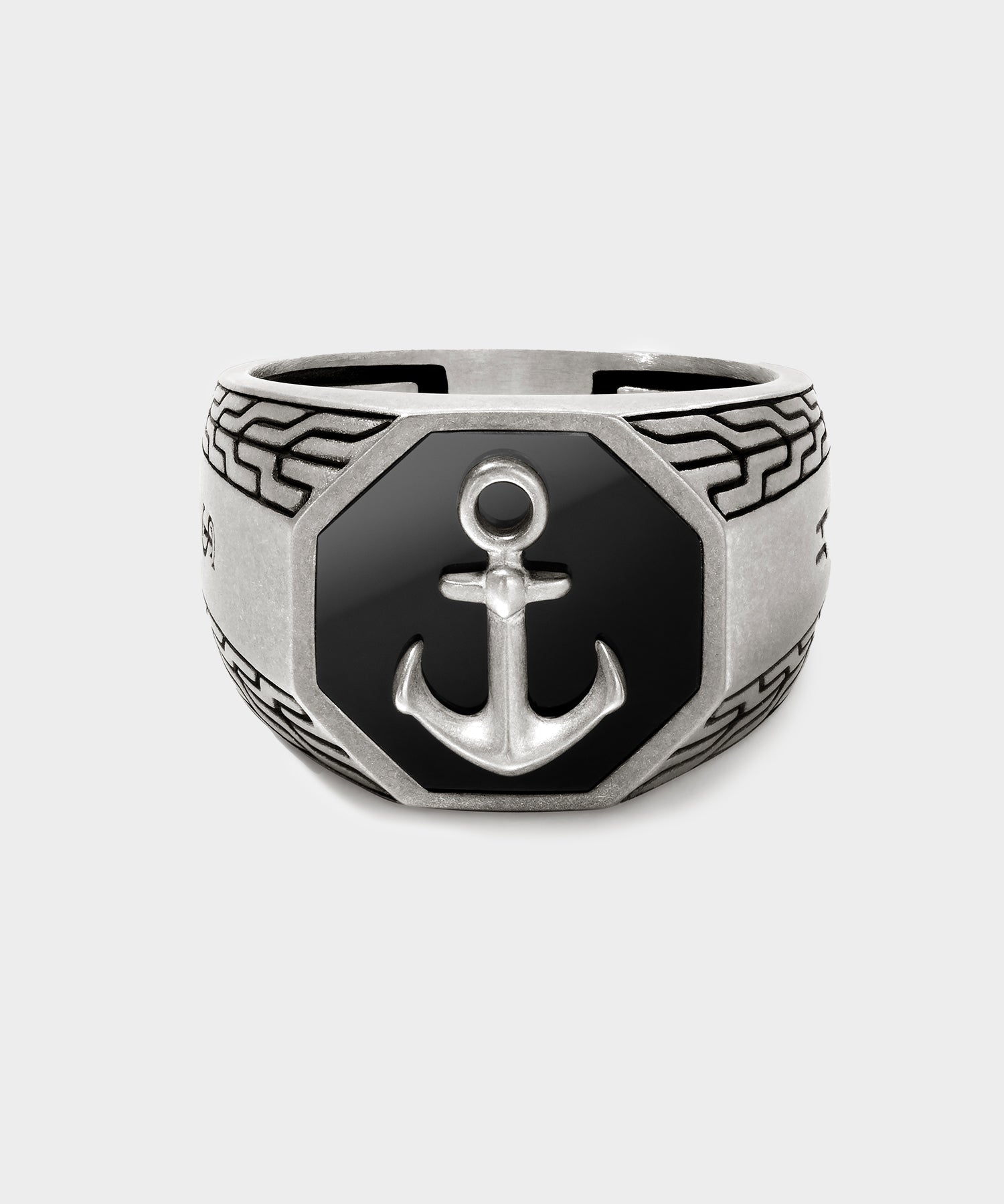 Reed Krakoff — the Creative Chairman of this storied jewelry brand — unveiled his first men’s collection in Spring 2024: chic rings, necklaces, earrings and bracelets, made by hand by Hardy artisans, using 100% reclaimed precious metals. Todd worked with the Hardy team to design this limited-edition, nautical-inspired collection. This Signet Ring features an engraved geometric pattern on the band and interior, with an anchor set into the black enamel top.