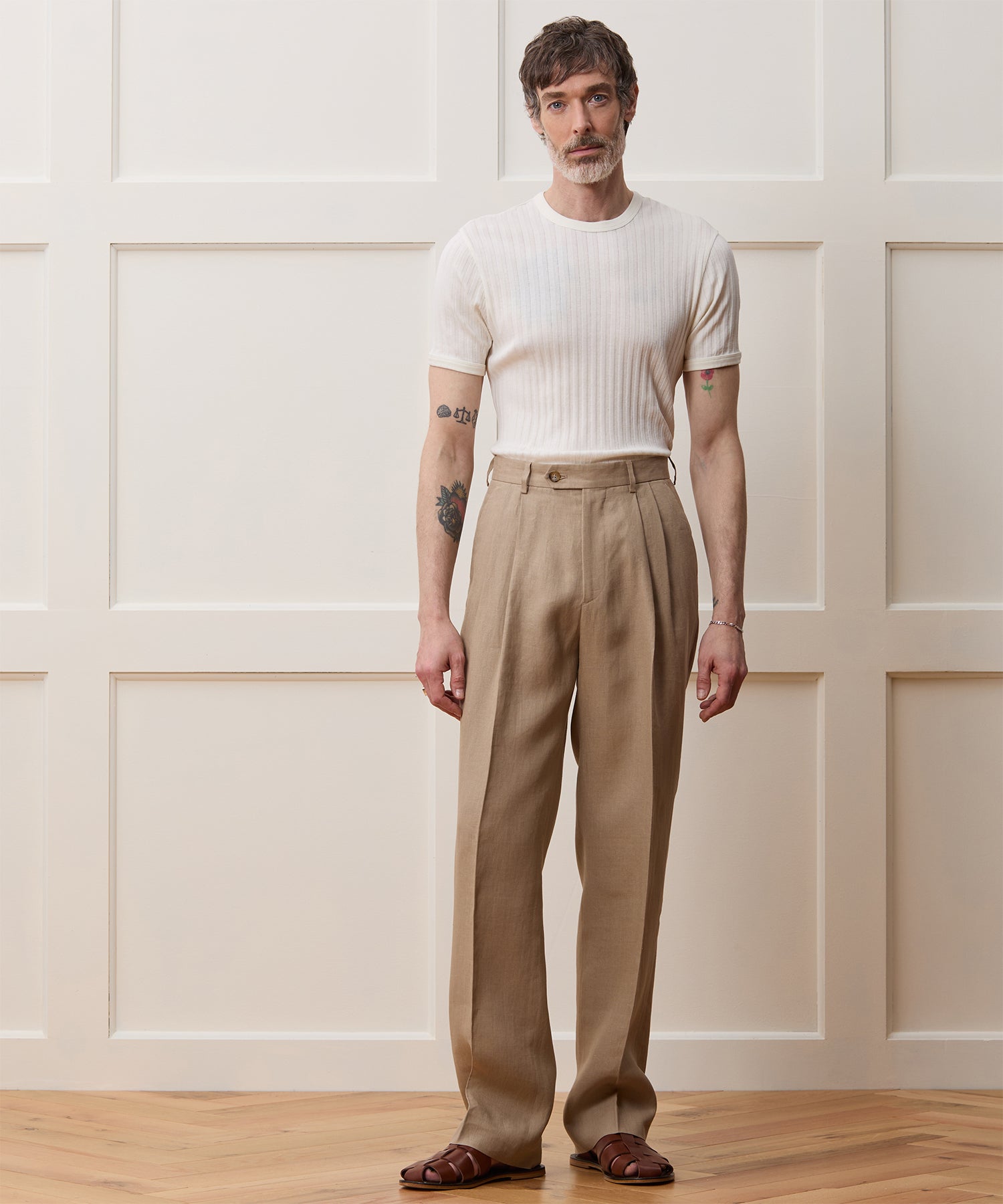 This all-cotton tee is made with a chic rib stitch that gives the fabric an almost pleated or corded look. Despite the architectural vibe, the fabric itself is very light and airy. It has a slim, classic fit that hugs the body, which makes this both easy to wear on its own and a perfect layer to wear under other styles. There’s also ribbing at both the collar and sleeves in an homage to vintage ringer tees.