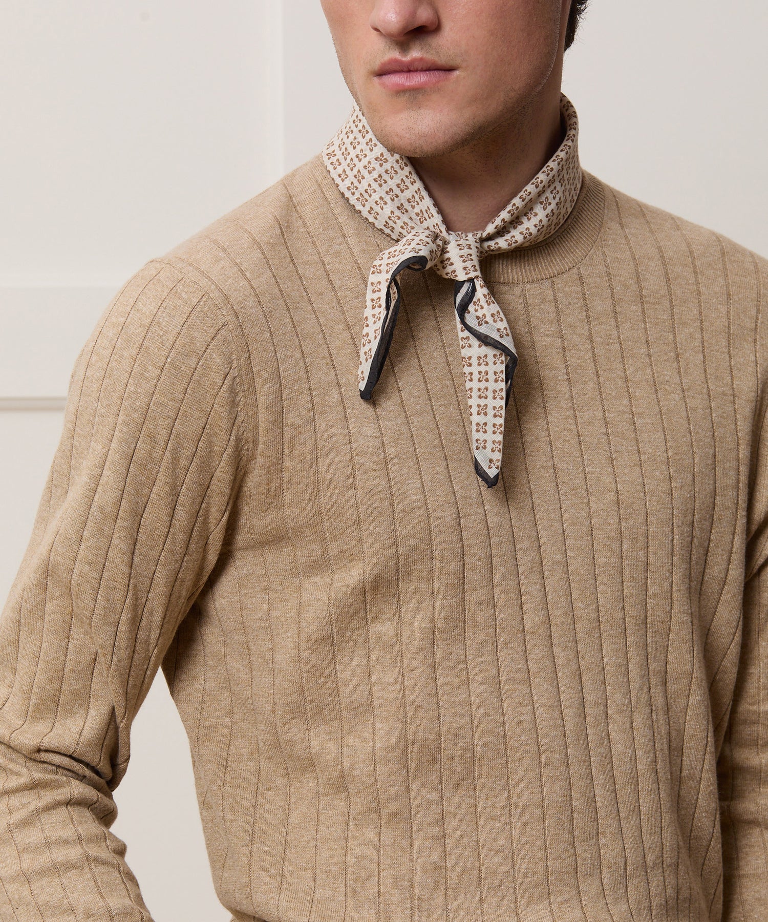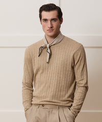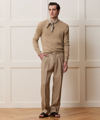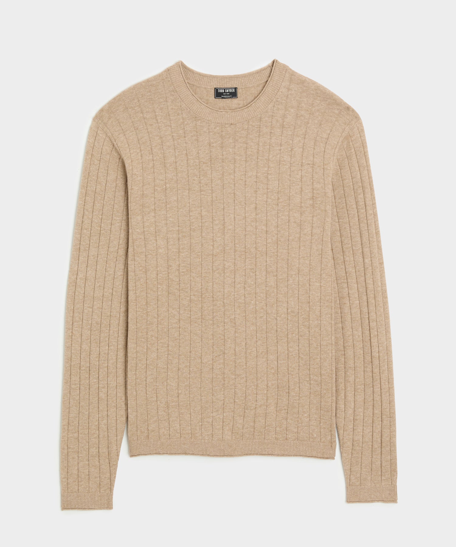 This sweater is the definition of what Todd calls a “luxe essential,” a go-to item refreshed in a refined fabric and sophisticated design details. In this case, the sweater is made from a blend of linen and cotton yarns that’s the perfect weight for summer — light, soft and breathable but not wrinkly, and able to wick moisture away from the skin on a foggy morning. The clean rib stitch gives it a tonal hit of texture. With clean styling and a chic rib-to-jersey roll edge at the trim, it has an elevated look that works tucked or untucked. Heads up: This sweater has a slim fit, but the nature of the linen yarn means it will grow a little over time for a more classic feel.