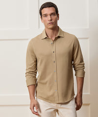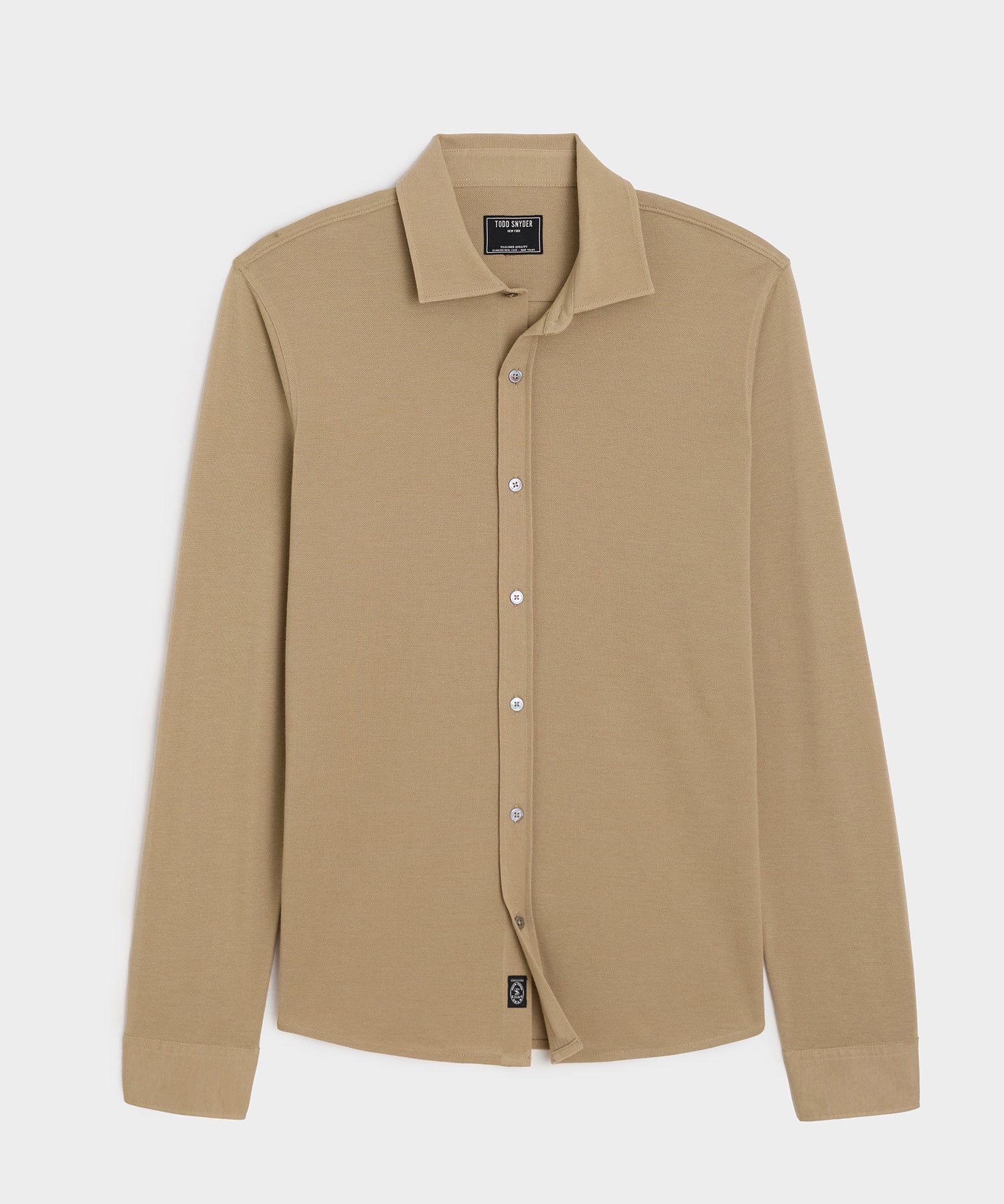 Never sacrifice on comfort or style. Our Pique Dress Shirt is a sneaky combination of both, with the looks of a classic woven shirt and the feel of your favorite tee. The fabric is a blend of cotton and a touch of cashmere; it’s a finely textured pique that’s breathable, soft, lightweight, and has just the right amount of stretch. The longer point collar and tailored means this looks excellent with a tie and slips easily under a sport coat, but it’s just as sharp on its own, too.
