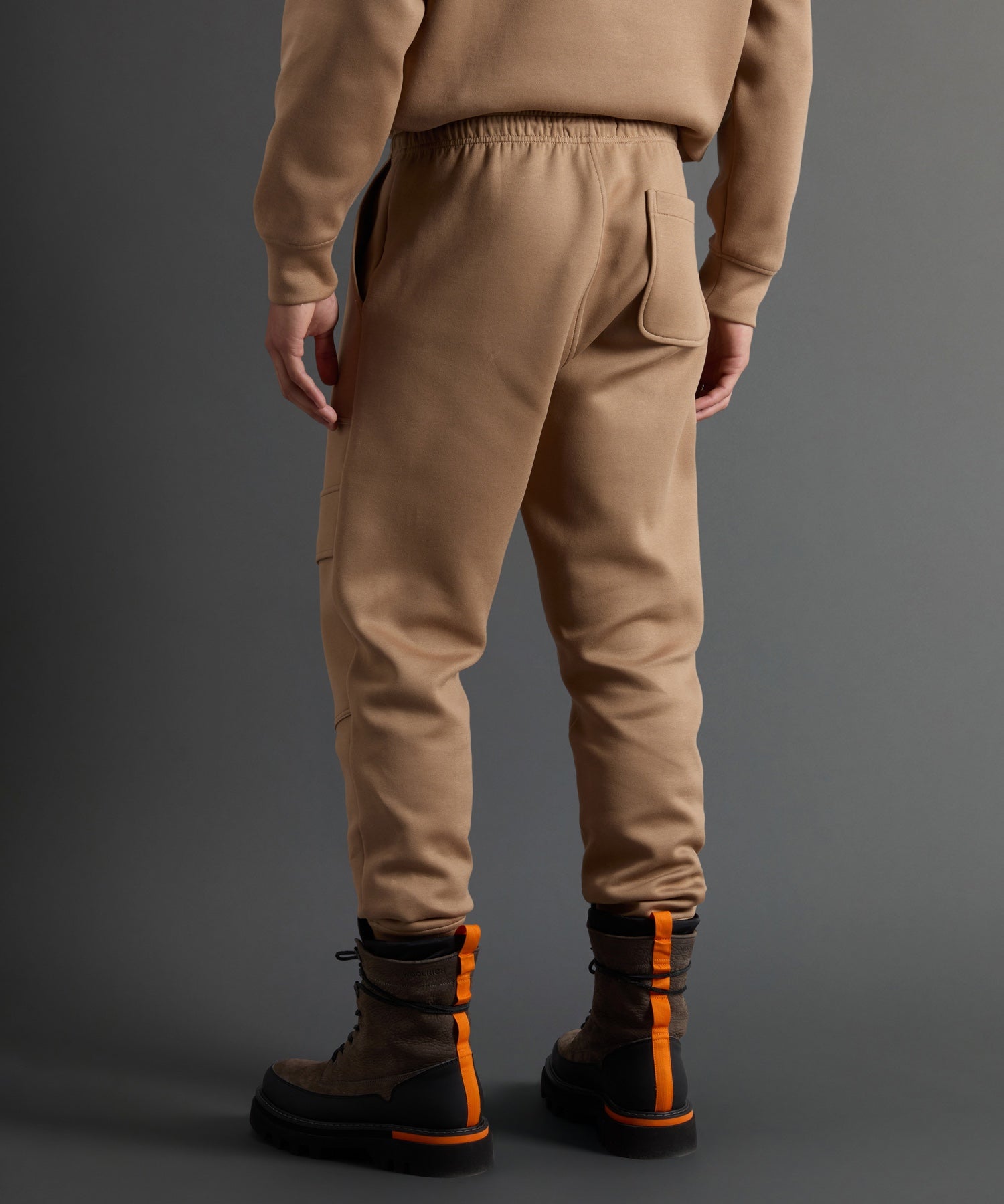 The casual sweatpant gets a chic upgrade. These are made from an Italian stretch cotton that’s dense but light and smooth. The fit is classic jogger: gently tailored, tapering from a drawcord waist to the elastic cuffs. There are clean, stitch-through details throughout — at the long hand pockets, the hidden cargo pockets, knees, and more.