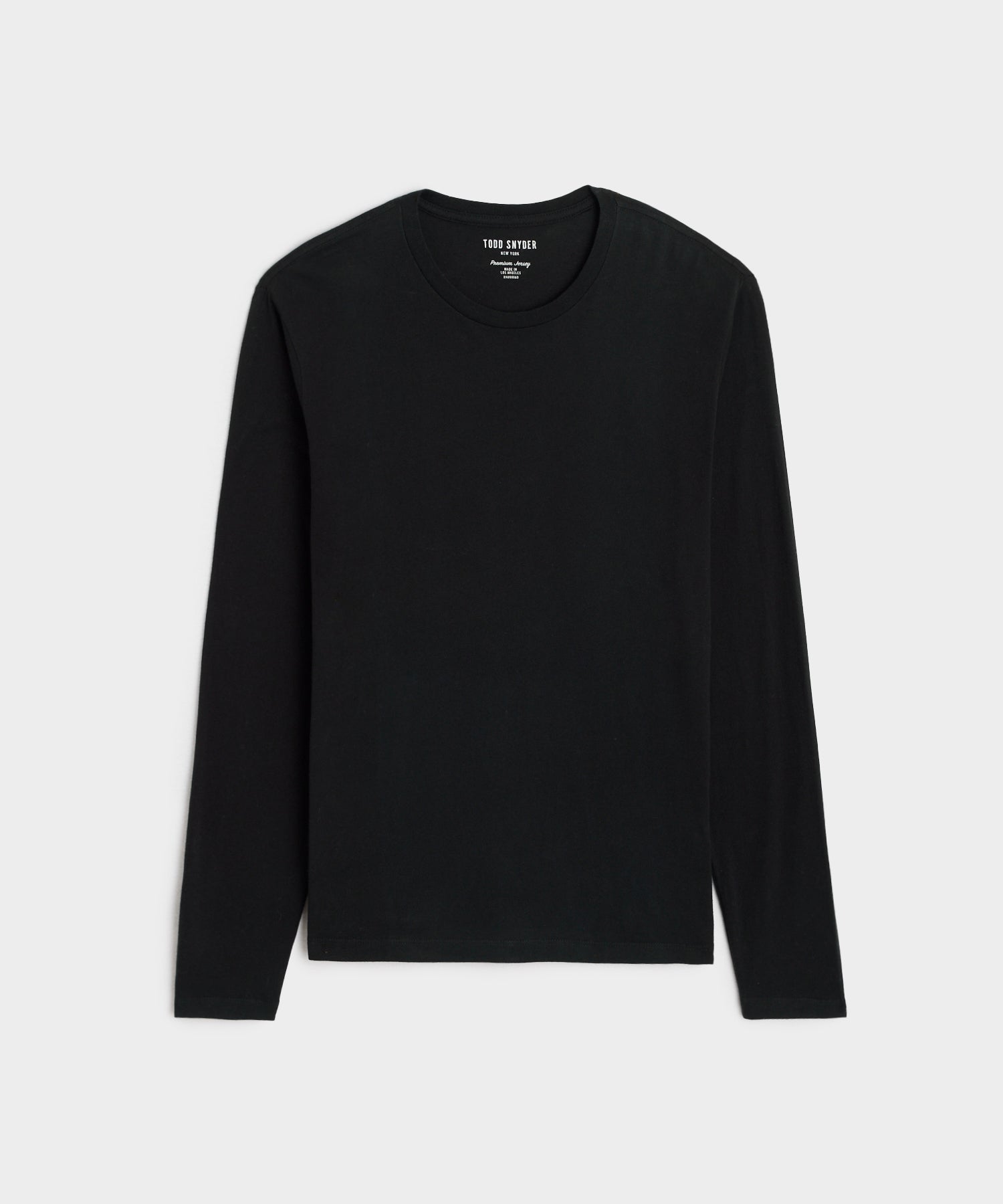 Our signature Made in the USA Long-Sleeve Tee is a year-round staple. Manufactured in a legendary Los Angeles factory, it’s crafted from an all-cotton fabric we call “Premium Jersey.” Named for largest of the Channel Islands, Jersey is both solid and opaque but also soft and breathable — its structure gives it good drape and makes for an excellent base layer. Ours is made from combed cotton, which is softer than conventional cotton (and less prone to pilling). It has a smooth, fine handfeel, the right amount of stretch and is reactive garment-dyed for rich, even color that won't fade. Lightweight and perfect for layering, it’s ideal with jeans or under a summer suit.