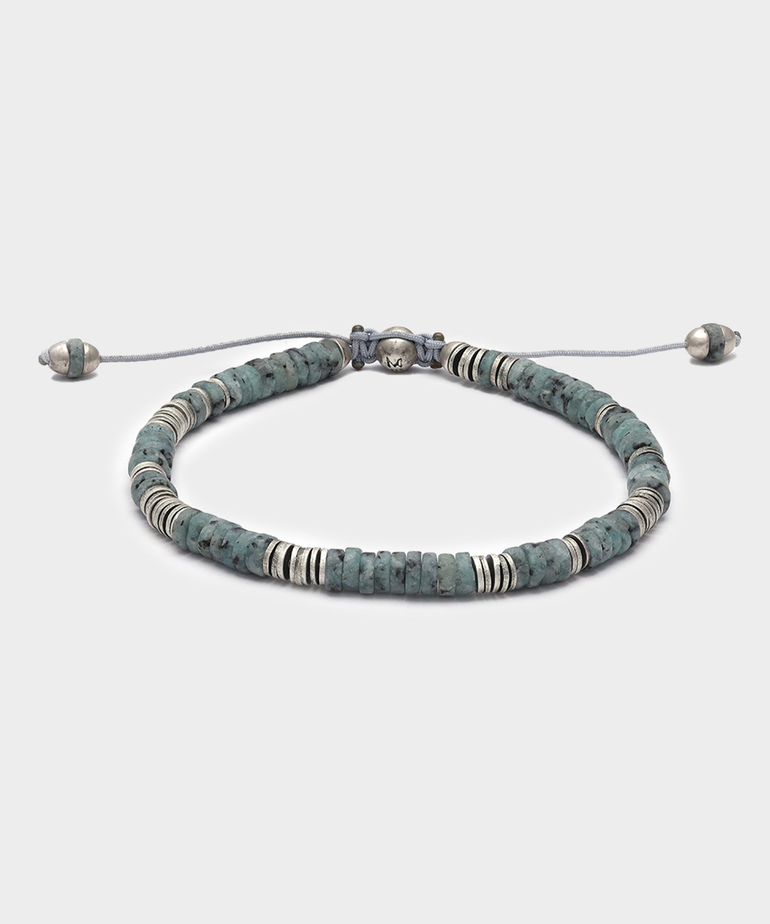 This classic design from M.Cohen gives a texture and color to your stack. The 925 sterling silver discs combined with matte turquoise gemstone to form a great pattern, and is expertly crafted by hand.