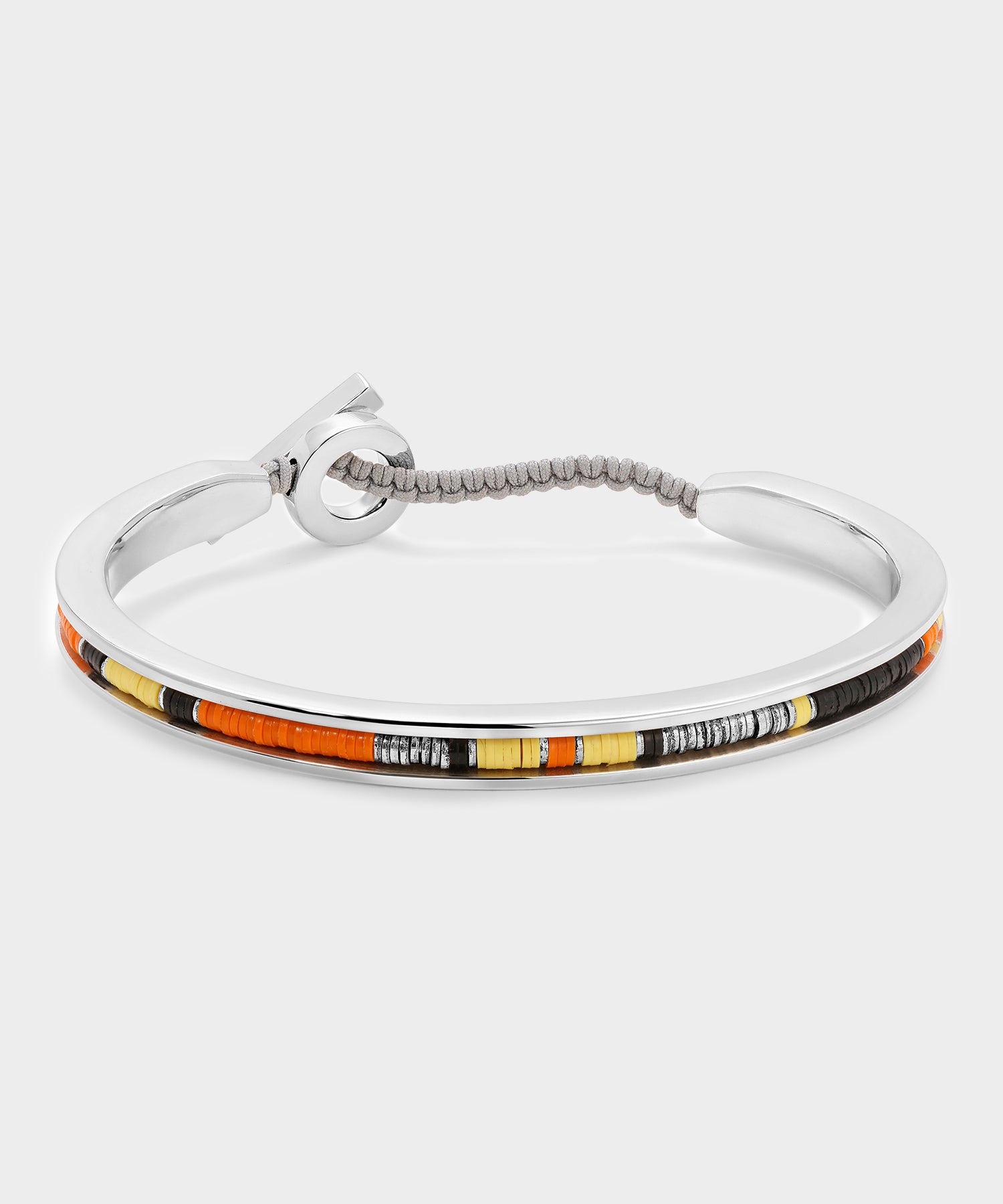 Expertly hand-crafted with genuine African trade beads and 925 sterling silver, this Oblong Square Cuff features a vibrant orange pattern. Elevate any outfit with this unique and thoughtfully designed piece, perfect for those who appreciate quality and cultural influences.