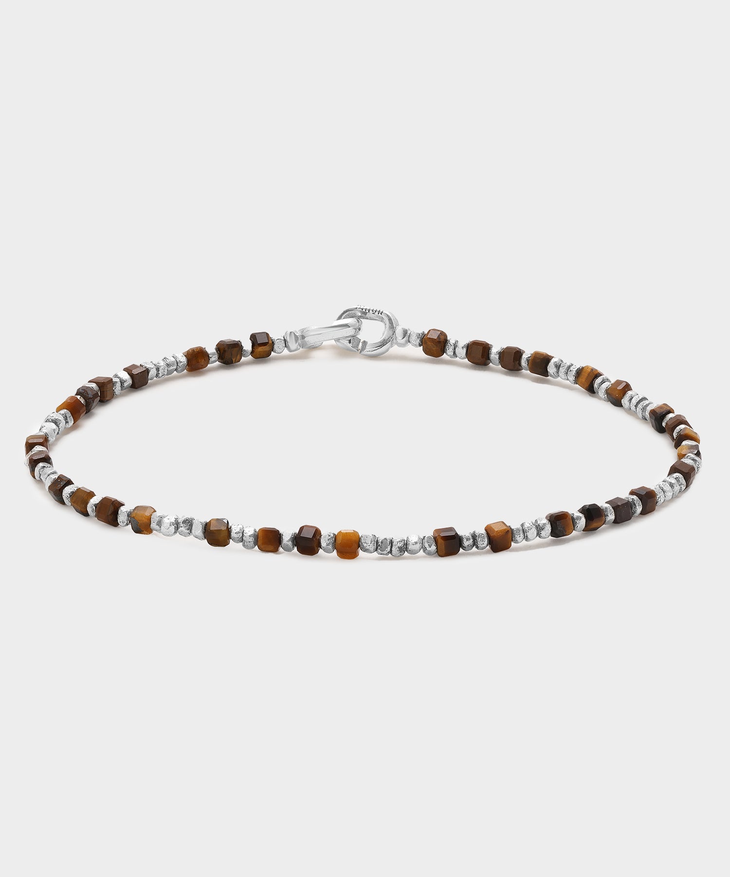 Expertly crafted with sterling silver and cornerless tiger eye beads, the Percep Bracelet exudes elegance and sophistication. The lustrous silver accentuates the warm tones of the tiger eye, making it a statement piece that captures attention