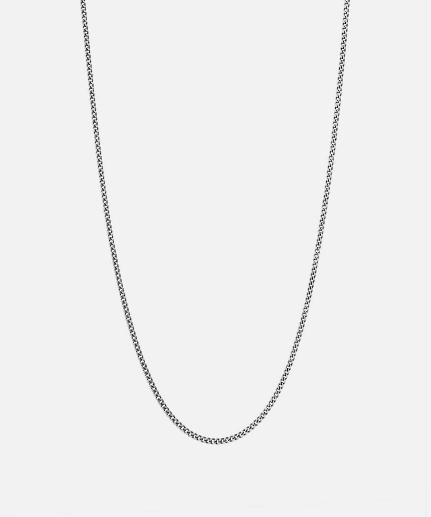 Handcrafted from sterling silver, this understated 2mm men's Cuban chain is polished or oxidized for the perfect vintage appearance. The piece can be worn alone or layered with others for an elevated yet modest accent to any look.