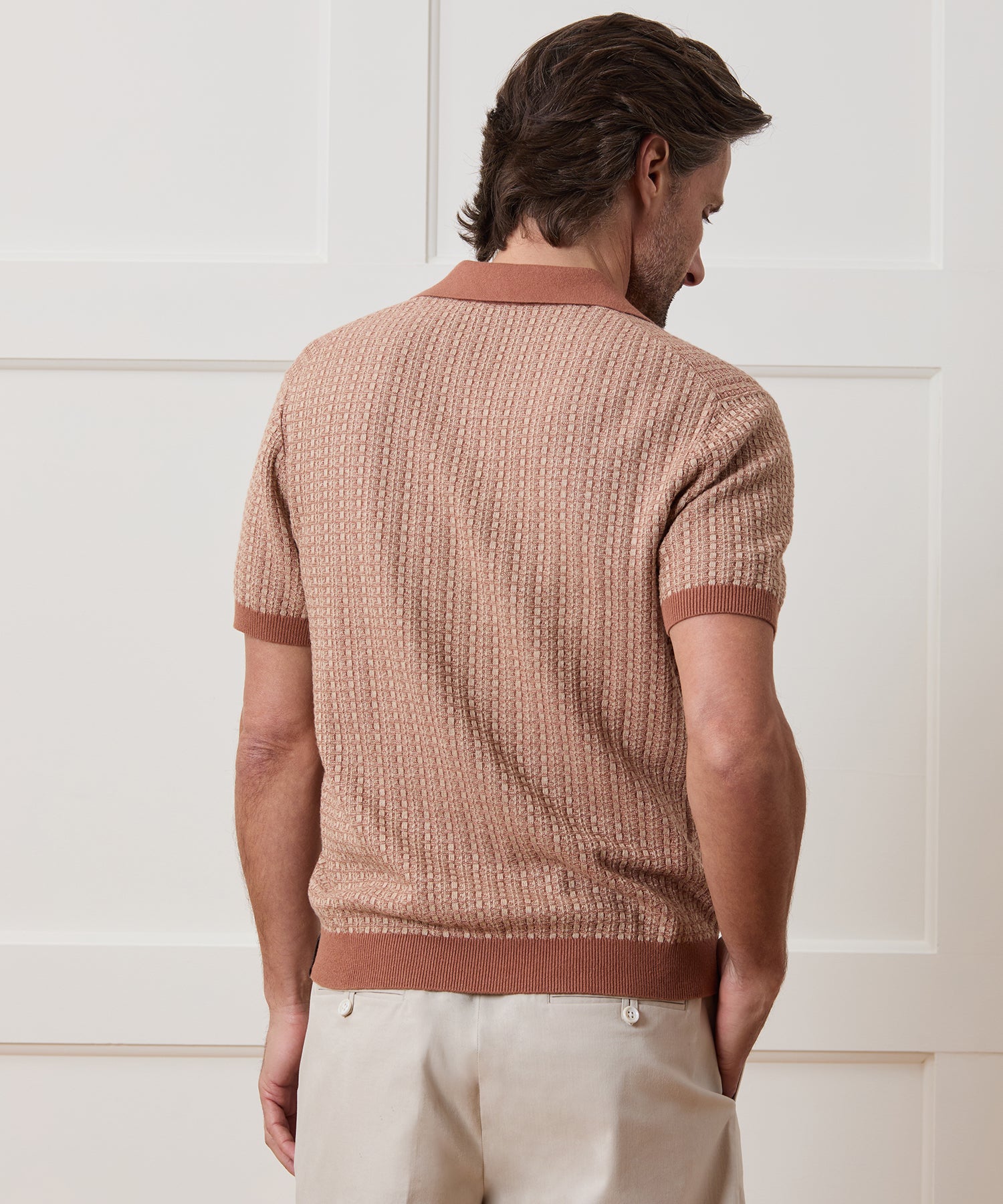 Our bestselling Montauk Polo, in a rustic and breathable linen-cotton yarn that’s just the right weight to see you from now through to fall. It’s knit in a mix of Jersey and reverse Jersey stitches, which creates a small geometric pattern and a subtle texture that resembles a basketweave fabric up close. With an easy, slim fit and our signature Montauk collar — a buttonless style that’s often referred to as a “Johnny” collar — it’s perfect to wear on its own, or to add a pop of texture beneath a jacket or sport coat.