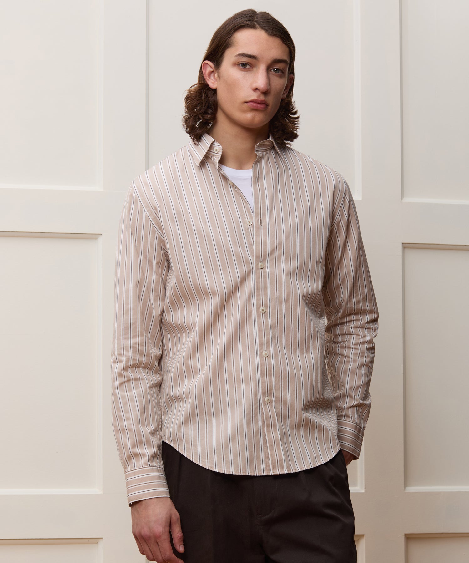 This classic Point Collar Shirt is made from a lightweight cotton poplin: breathable, cool, and not prone to wrinkling. It has a fine, silky feel that falls somewhere between our Summerweight and Oxford Shirts. Point collars, by the way, are a bit more traditional than spread collars — and they’re actually the same length, but the points themselves are further apart in a spread collar. The clean silhouette here (no chest pocket) is perfect for wearing underneath sport coats and suit jackets.