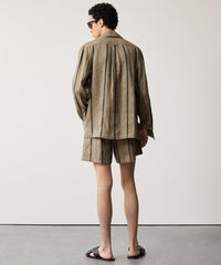 Our Beachcomber Short sits right between casual and dressy for maximum versatility. On the one hand, it has a comfortable elastic waist and interior drawcord — on the other, it has belt loops and a true zip-up fly, for a more tailored look. It’s crafted from crisp linen with a dry handfeel and a tonal, embroidered stripe. That, and a breezy 5” inseam and relaxed fit give this short a chic look that works well styled with everything from a tee and sneakers to a button-down and espadrilles.