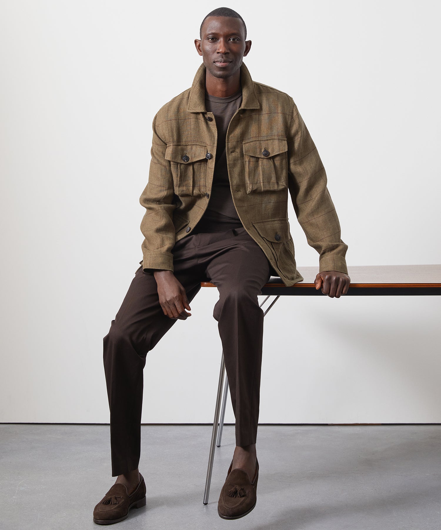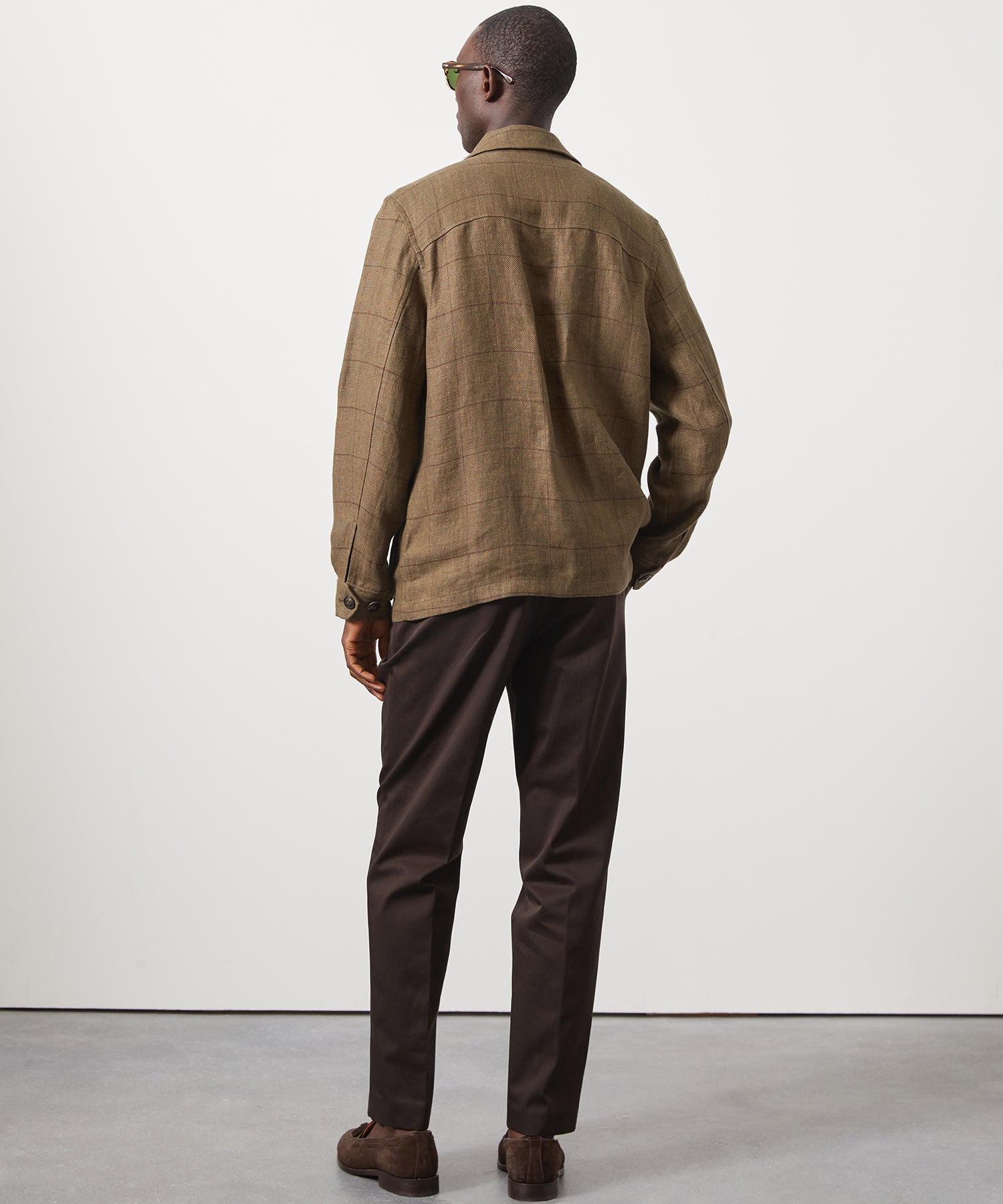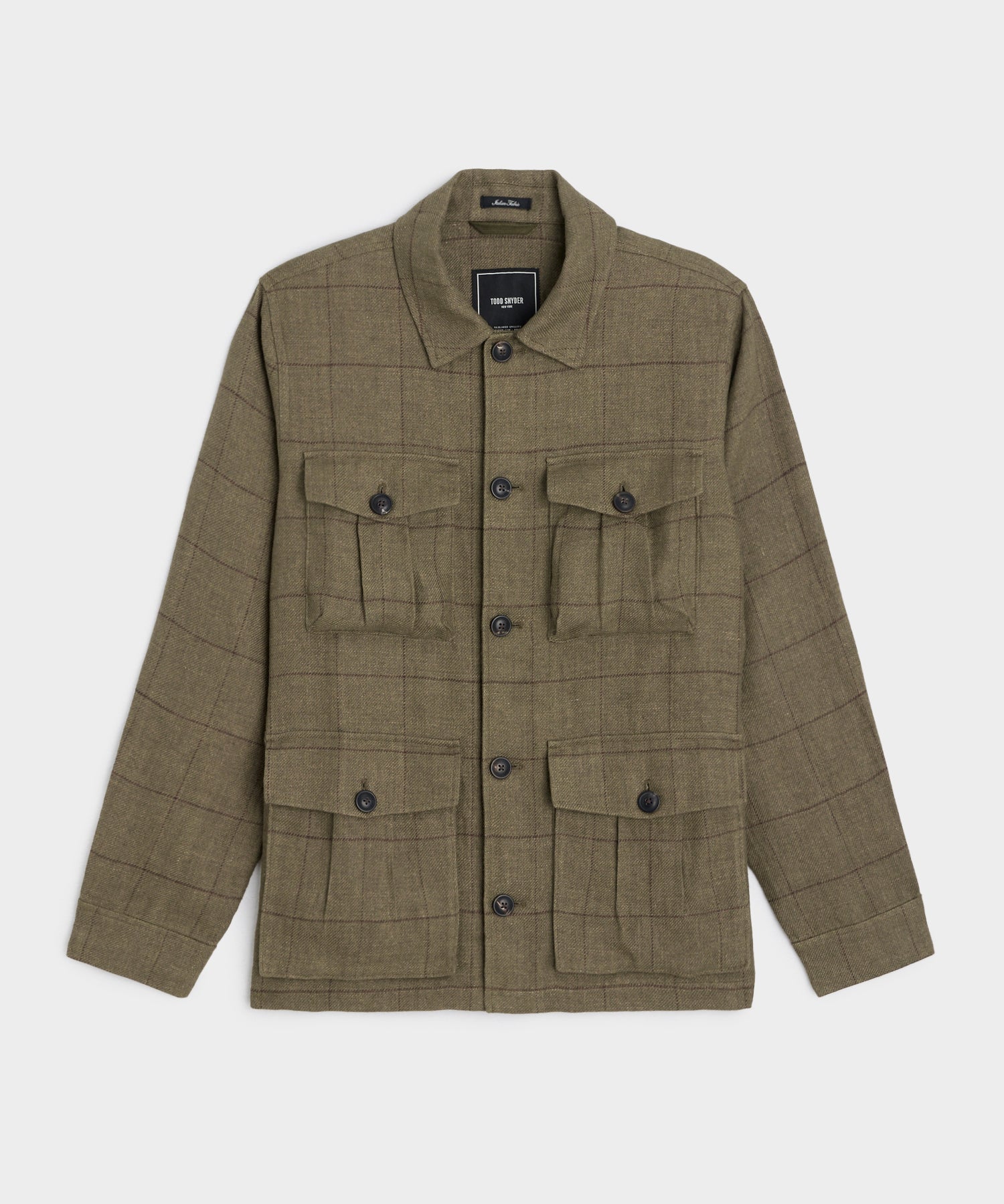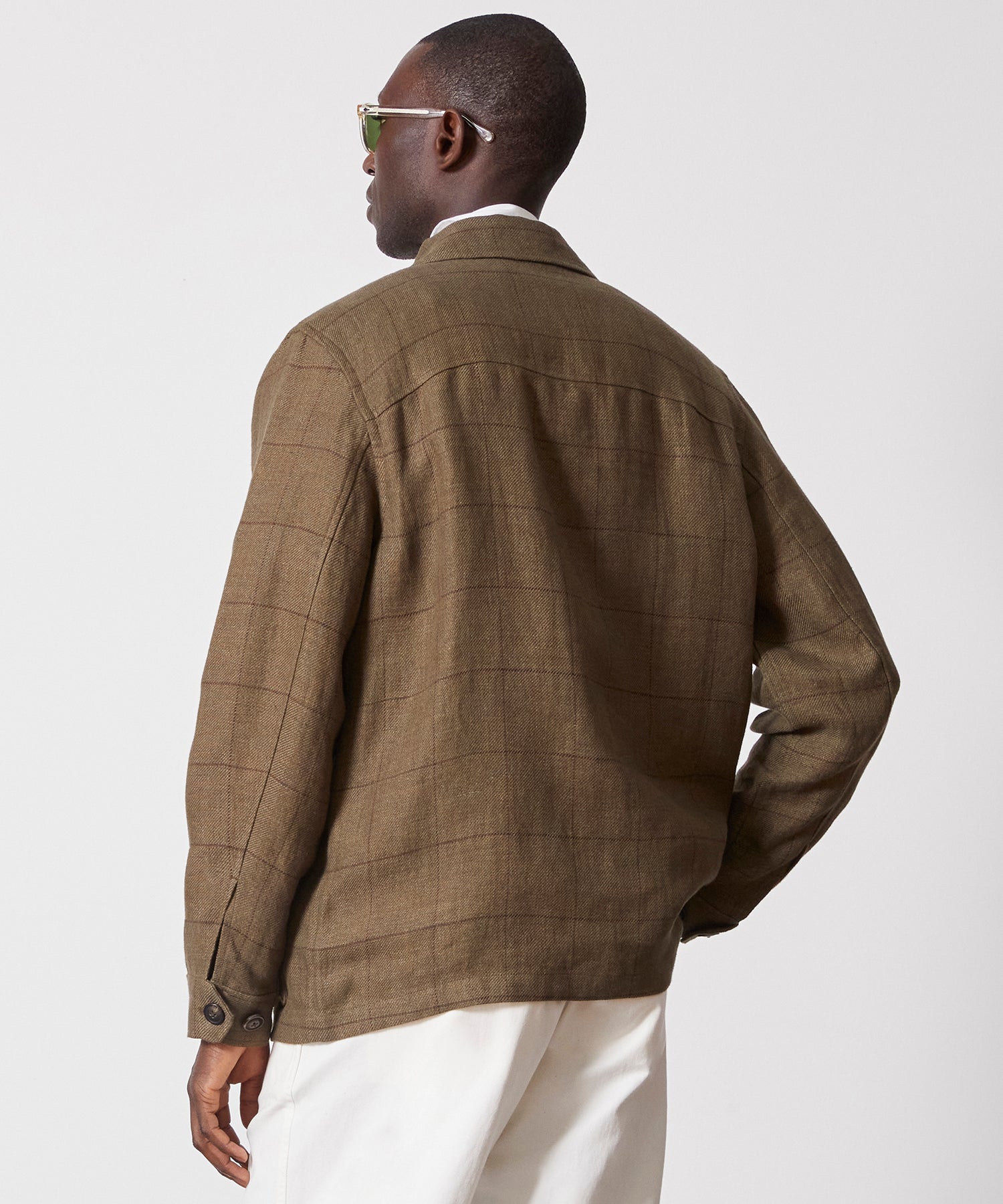The Linen Field Jacket is our update on the iconic field “shacket.” Traditionally made from lightweight cotton in khaki hues, ours is crafted from gutsy Italian linen in an olive windowpane that’s easy to dress up or down. It has a breathable feel and a good amount of drape, neatly straddling the line between shirt and jacket. In an homage to the original military style, each of the four pockets is constructed with expandable bellows for maximum practicality. Timeless, rugged and stylish, the vintage-inspired silhouette calls to mind the leading men of Hollywood’s Golden Age.