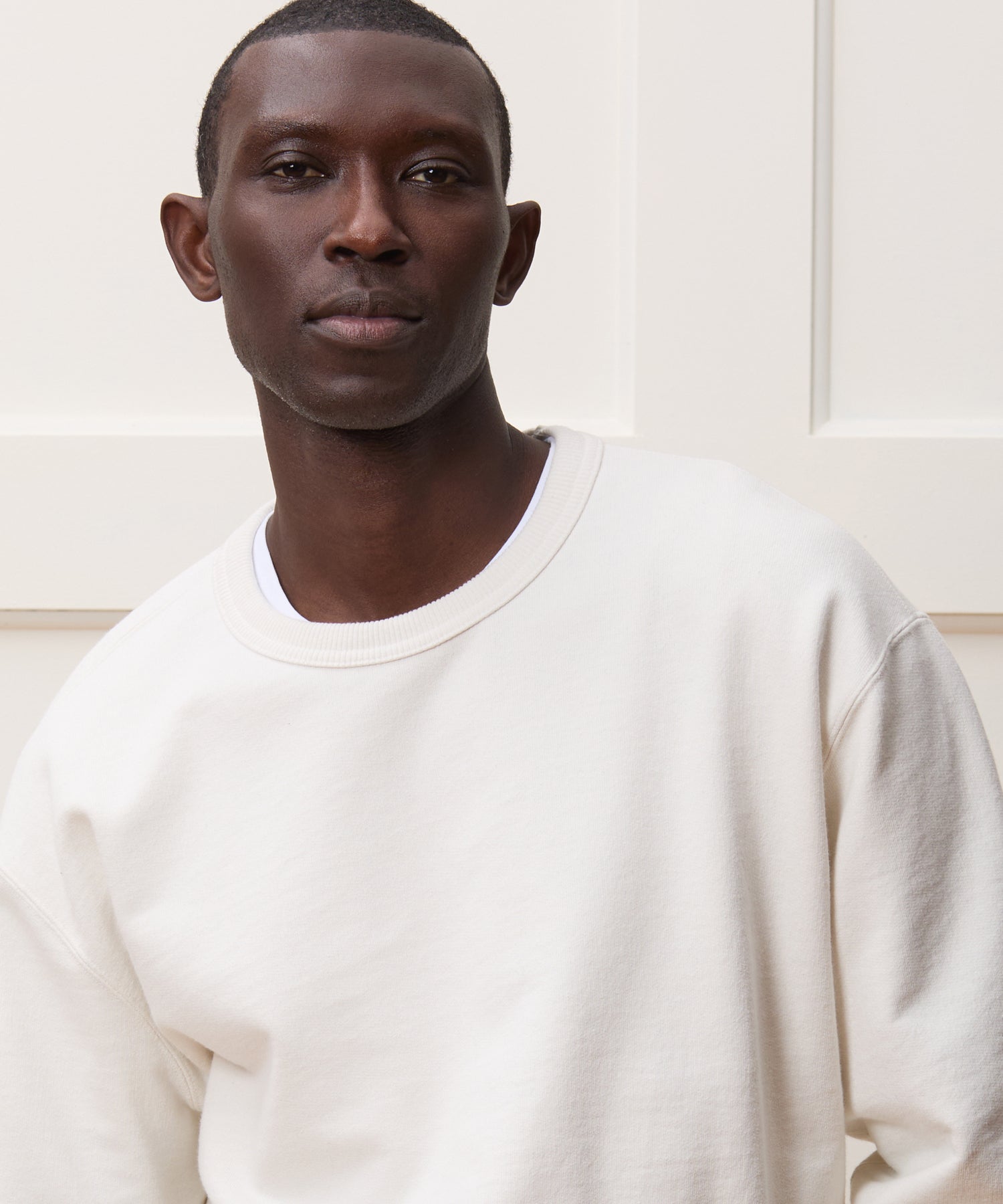 A classic Crewneck in a chic oversized fit. This sweatshirt is made from a soft, midweight cotton French terry that feels broken in from the get-go. The relaxed silhouette is inspired by some of our favorite styles from the 80s and 90s, with a boxy, off-the-shoulder cut through the top that tapers just enough at the waist. The fabric is specially knit to resist vertical shrinkage, so it stays true to size and gets better with time.