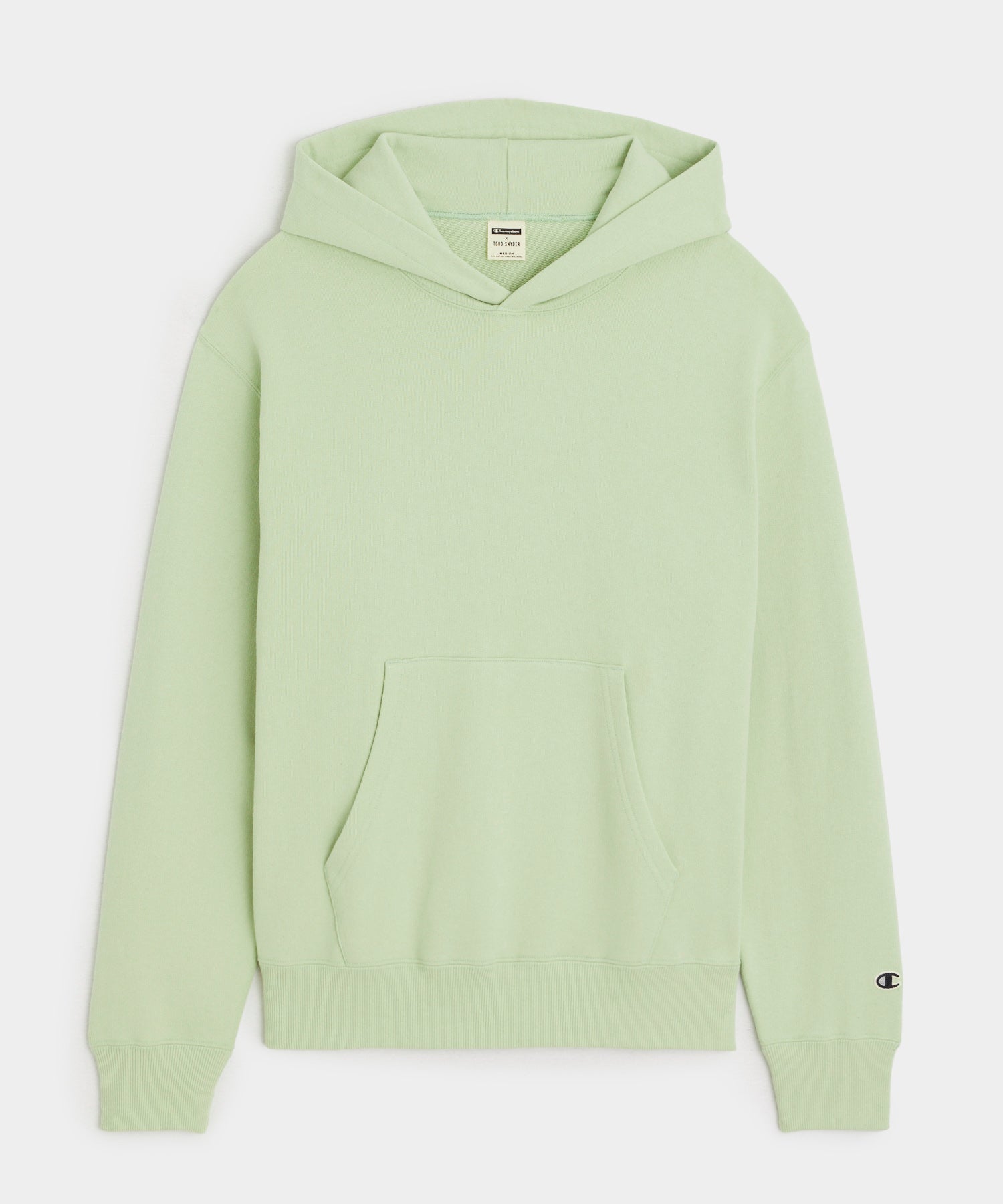 Unlike our classic Champion sweatshirt, this style features a relaxed, oversized fit and dry hand feel. This hoodie is made from a midweight cotton French terry that feels broken-in from the get-go. The relaxed silhouette and heavy fabric is inspired by some of our favorite styles from the 80s and 90s, with a boxy, off-the-shoulder cut through the top that tapers just enough at the waist. Premium details include a sturdy double-layered, drawstring-free hood that will hold its shape, and a fabric that’s specially knit to resist vertical shrinkage, so it stays true to size and gets better with time.
