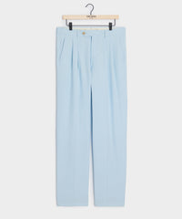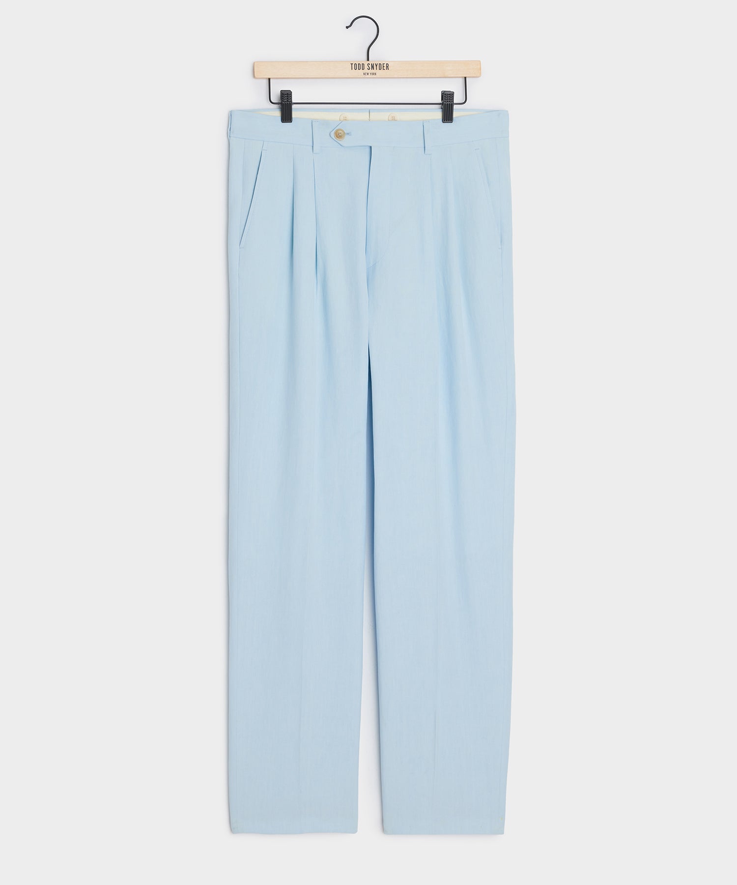 Our Wythe Trouser is a casual take on the traditional pleated trouser in a modern, oversized but tailored fit. A natural waist and double reverse pleats (which face out, away from the fly) lead to a relaxed fit through the legs for a vintage-inspired look. These are made from a luxurious three-ply linen that we call “sueded,” for its exceptionally soft handfeel. Traditional linen is crisp and dry; here, the fabric undergoes a rigorous finishing process, which results in a smoother feel but retains linen’s breathability and drape. Better yet, it’s less prone to wrinkling, which makes it the perfect way to suit up for summer event season. Try wearing them with a Point Collar Dress Shirt and the matching sport coat when you’ve got something formal on the calendar, or dress them down with a tucked-in tee or Sweater Polo.