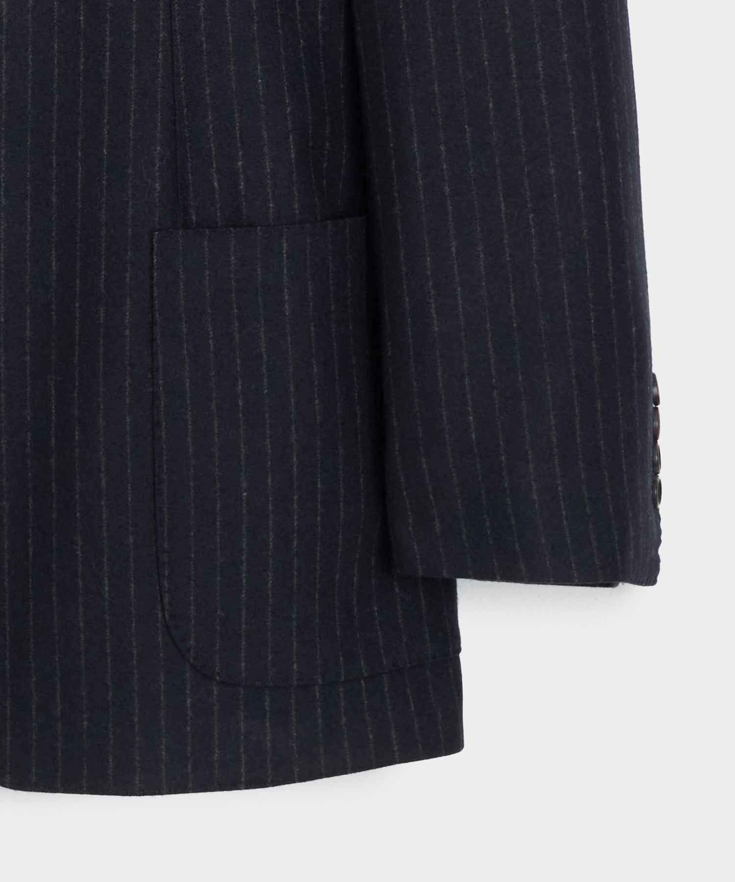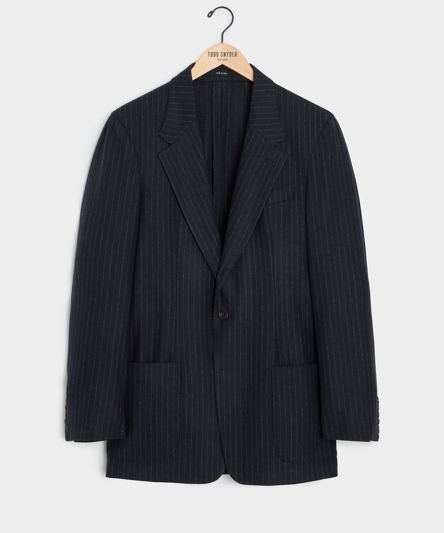 This Wythe Sport Coat was inspired by our runway show — both elegant and casual, it represents the epitome of soft tailoring. It has a relaxed fit and natural shoulders for a slouchy-chic look, but not a shapeless one. There’s also a double vent in the back and a lightweight butterfly lining. It’s made from Italian wool with a flat, soft handfeel in a classic pinstripe.