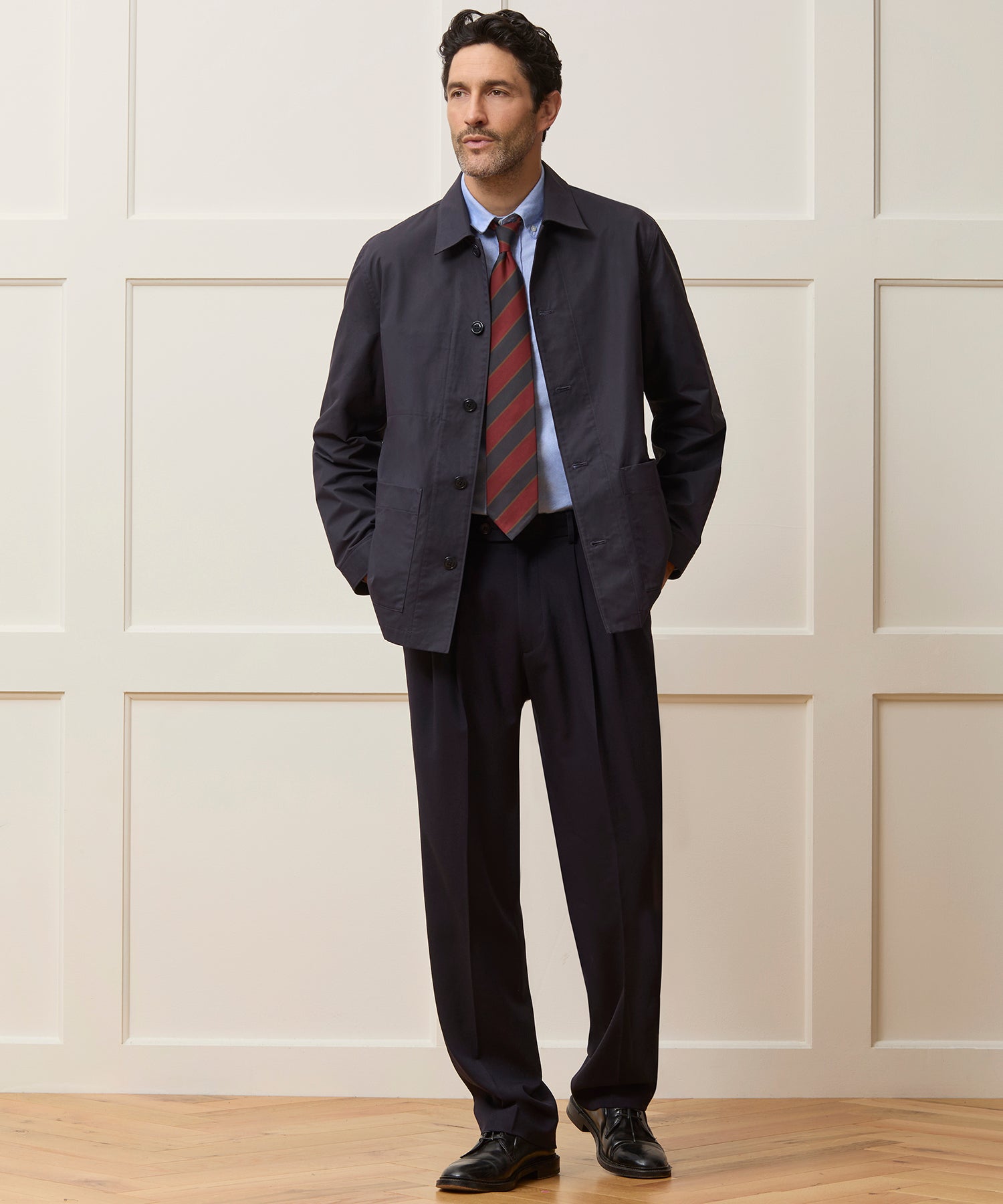 Our traditional chore coat silhouette in a new Italian fabric perfect for transitional weather. The basic silhouette — crisp lines, an easy, ever-so-slightly oversized fit and patch pockets — remains the same. The key is that fabric: an incredibly lightweight, water-resistant cotton-nylon, made by the experts at Olmetex, a world-renowned mill established in Como in 1954. A rugged-meets-refined layer, it’s versatile enough to wear anywhere and sized for easy layering.