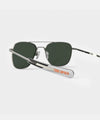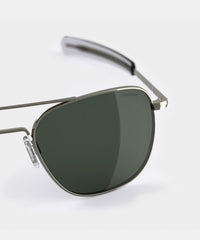 For this exclusive take on the authentic Aviator, the frames are Gunmetal. Other design details include “bayonet-style” temples that bend, an innovation originally developed so test pilots could pull on and off their helmets with ease;SkyTec™ Glass Polarized lenses with Vector™ Anti-Reflective & Blue Wave™ lens technology; and astrong enamel top coat that’s twice-baked at 400 degrees for durability.Randolph is proud to be a family-owned and operated business that manufactures its glasses in Randolph, Massachusetts USA.