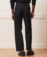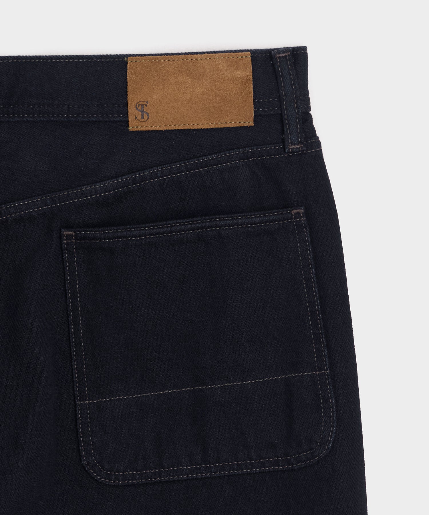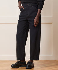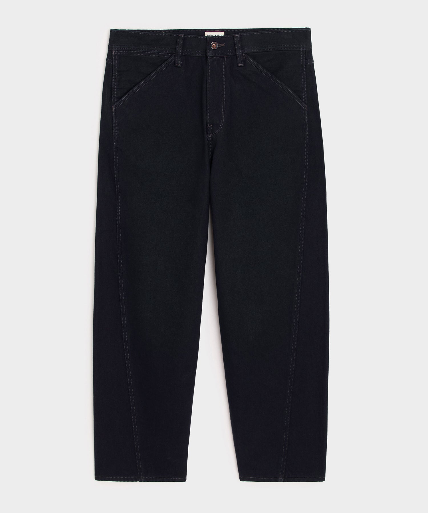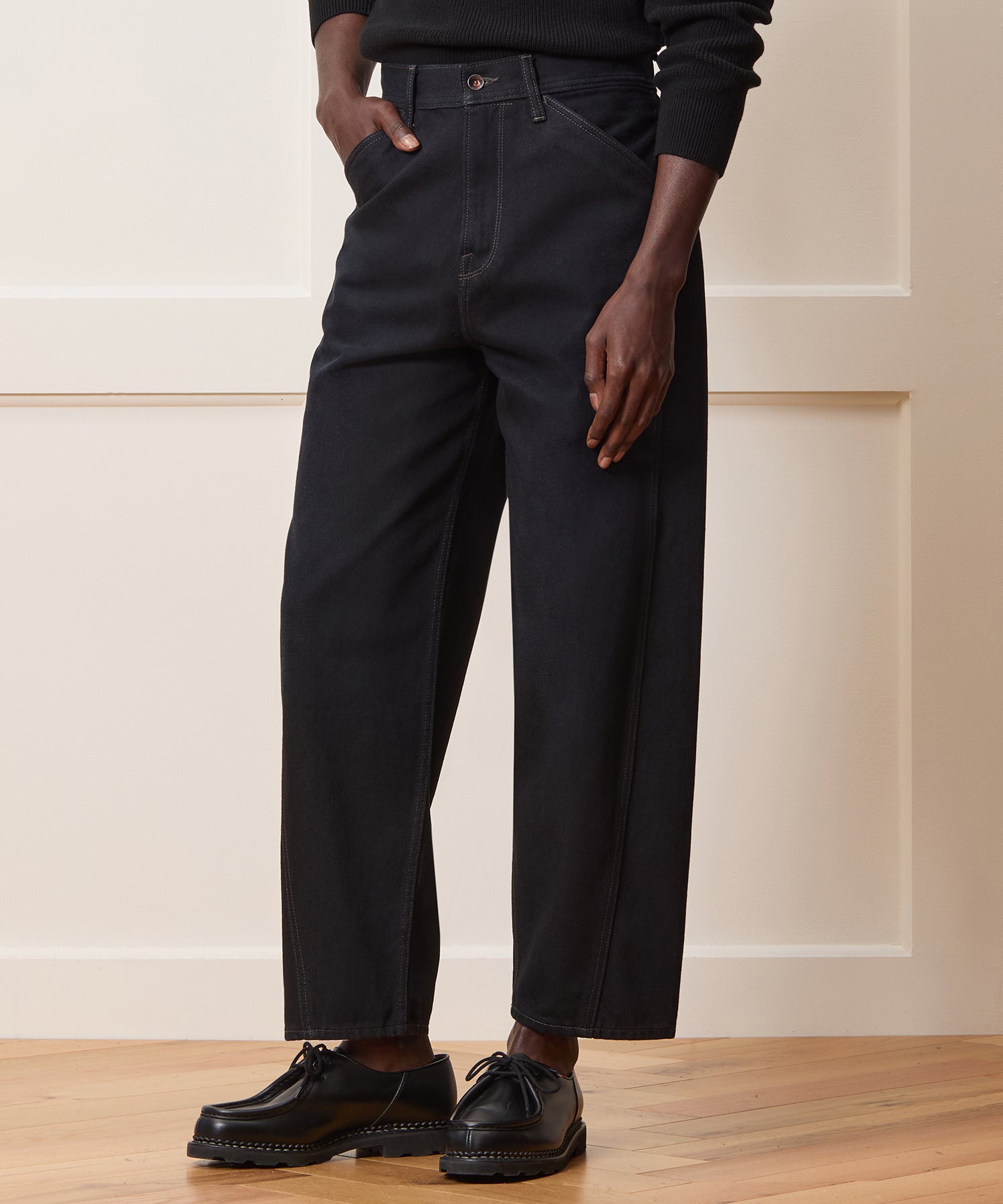 These Barrel Jeans are crafted from an indigo denim overdyed in black, rinsed for a soft finish — because of the dye technique, as the black fades over time hints of the deep indigo will shine through. The fit complements the chic fabric: slightly relaxed, roomier up top before tapering at the ankle, with a twisted seam to help create that iconic barrel shape. That taper keeps these looking sleek and clean; no puddling here. Try wearing these with shorter, boxier shirts and jackets let the proportions shine.