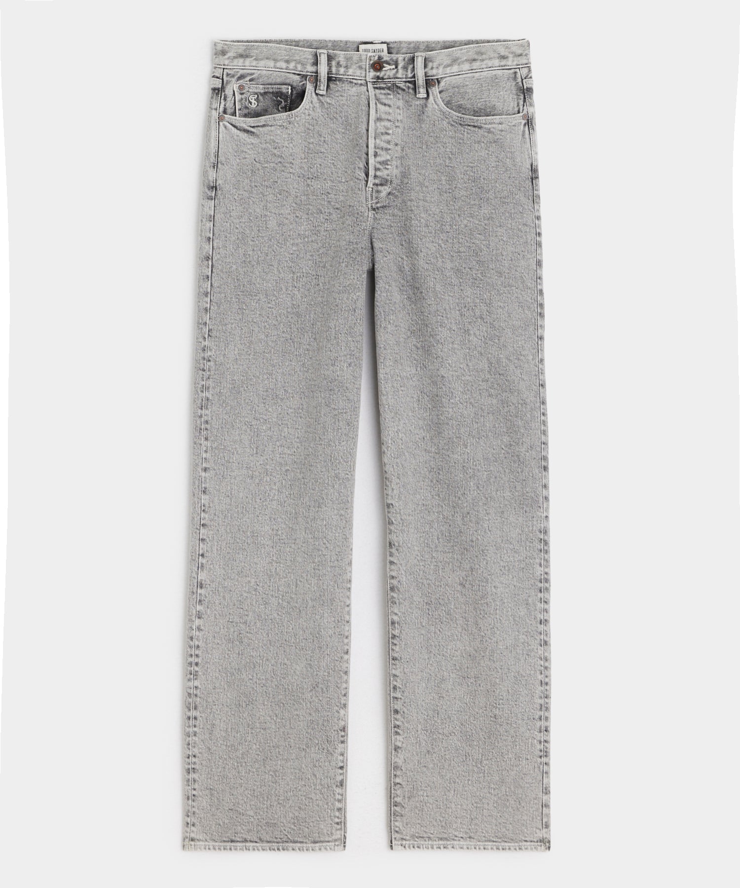 Our Selvedge jeans are loaded with quality, vintage-inspired details, including a shank button fly and oxidized rivets. There are also genuine selvedge outseams; when you turn up your cuff, you’ll spot that giveaway red ticking at the edge. Our Relaxed Fit is on-trend, roomy but clean with a full stovepipe leg. All told it’s about an inch bigger through the thigh, knee and rise than Slim. Gray Acid Wash is a bleached-out black-and-white twill — think refined take on the 80s classic, set off by white stitching.