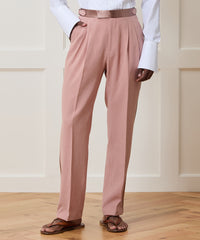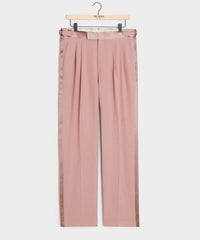Our Relaxed Tuxedo Trousers are a casual take on traditional tuxedo pants in a modern, oversized and pleated fit. An adjustable satin waistband and double reverse pleats (which face out, away from the fly) lead to a relaxed fit through the satin striped legs for a vintage-inspired look. They’re made from a luxurious three-ply linen that we call “sueded,” because of its exceptionally soft handfeel. Traditional linen is crisp and dry; here, the fabric undergoes a rigorous finishing process, which results in a far smoother feel but retains all of the linen’s breathability and drape. Better yet, it’s less prone to wrinkling, too — which makes it the perfect way to suit up for summer wedding season.